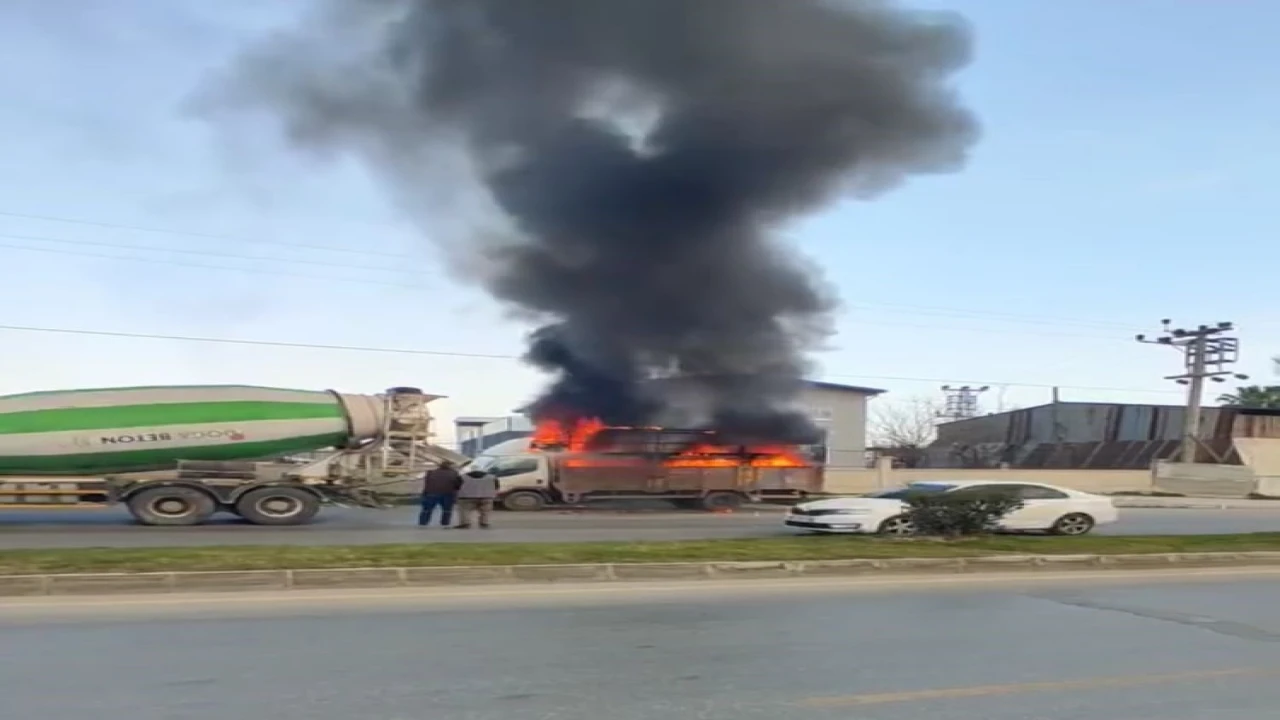 Mersin’de kasası alev alan kamyoneti ile bir süre ilerleyen sürücü, aracı daha sonra yol kenarına çekerek durdurdu. Bölgeden geçen beton mikserinin müdahalesiyle yangın söndürüldü.