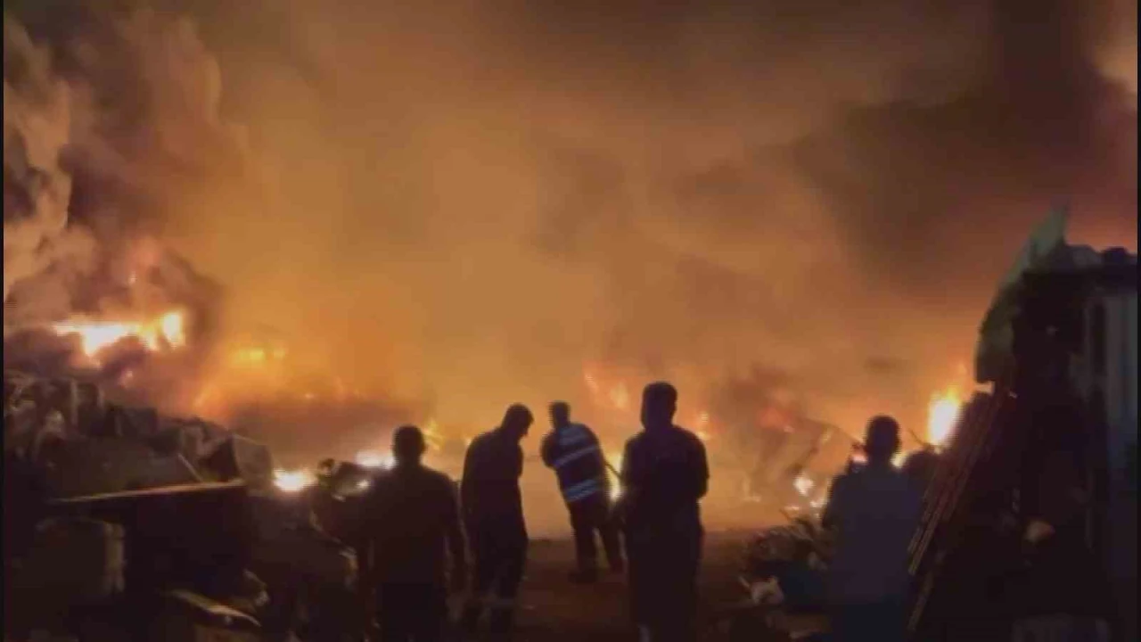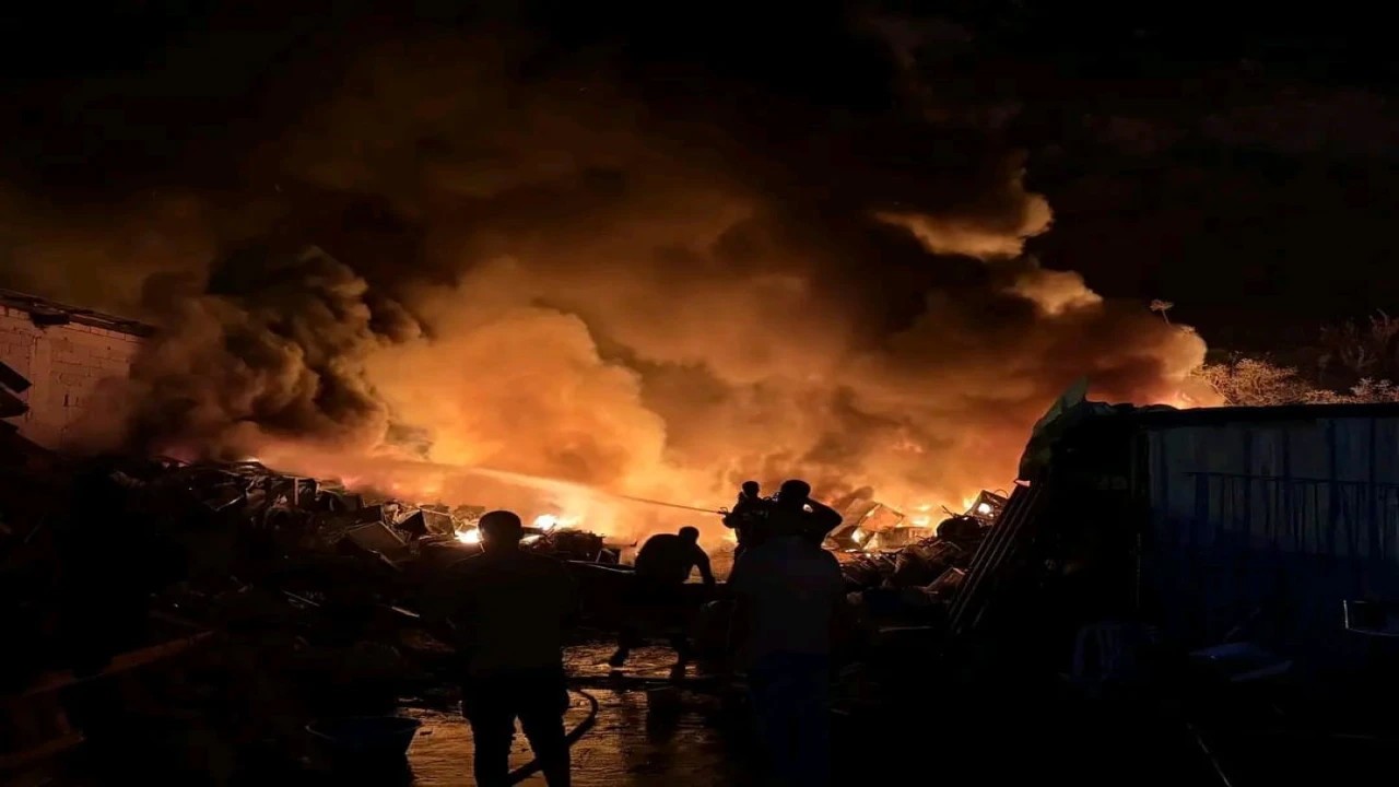HATAY’IN ANTAKYA İLÇESİNDE ALEVLERE TESLİM OLAN HURDALIK ALANDA ÇIKAN YANGINI GECEYİ AYDINLATIRKEN İTFAİYE EKİPLERİ TARAFINDAN SÖNDÜRÜLDÜ.