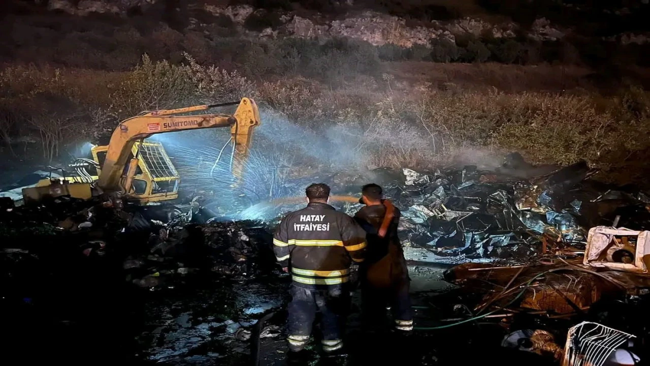 HATAY (İHA) - Hatay’ın Antakya ilçesinde alevlere teslim olan hurdalık alanda çıkan yangını geceyi aydınlatırken itfaiye ekipleri tarafından söndürüldü.