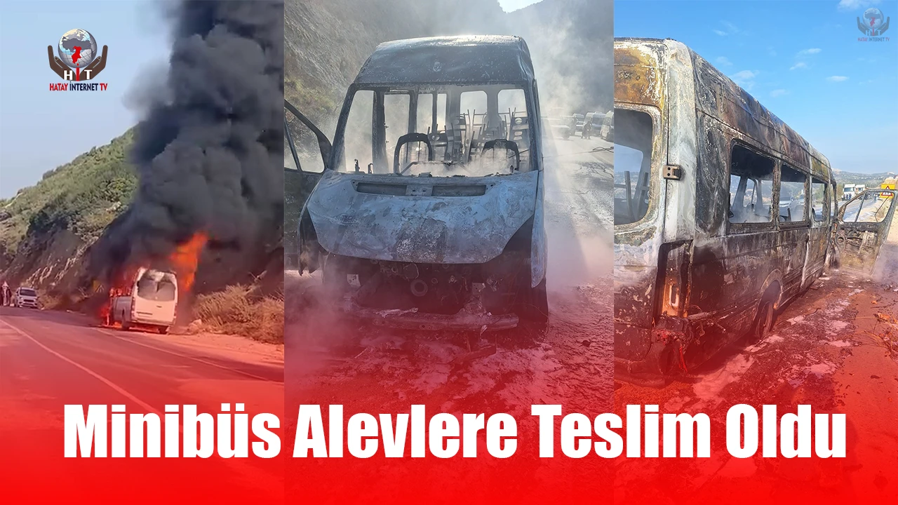 HATAY (İHA) - Hatay’da seyir halindeyken yanmaya başlayan minibüs alevlere teslim olarak kullanılmaz hale geldi.