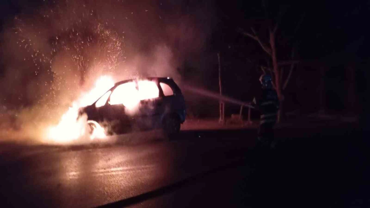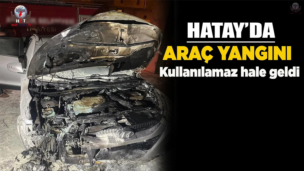 Hatay’da alevlere teslim olan otomobil yanarak kullanılmaz hale geldi.