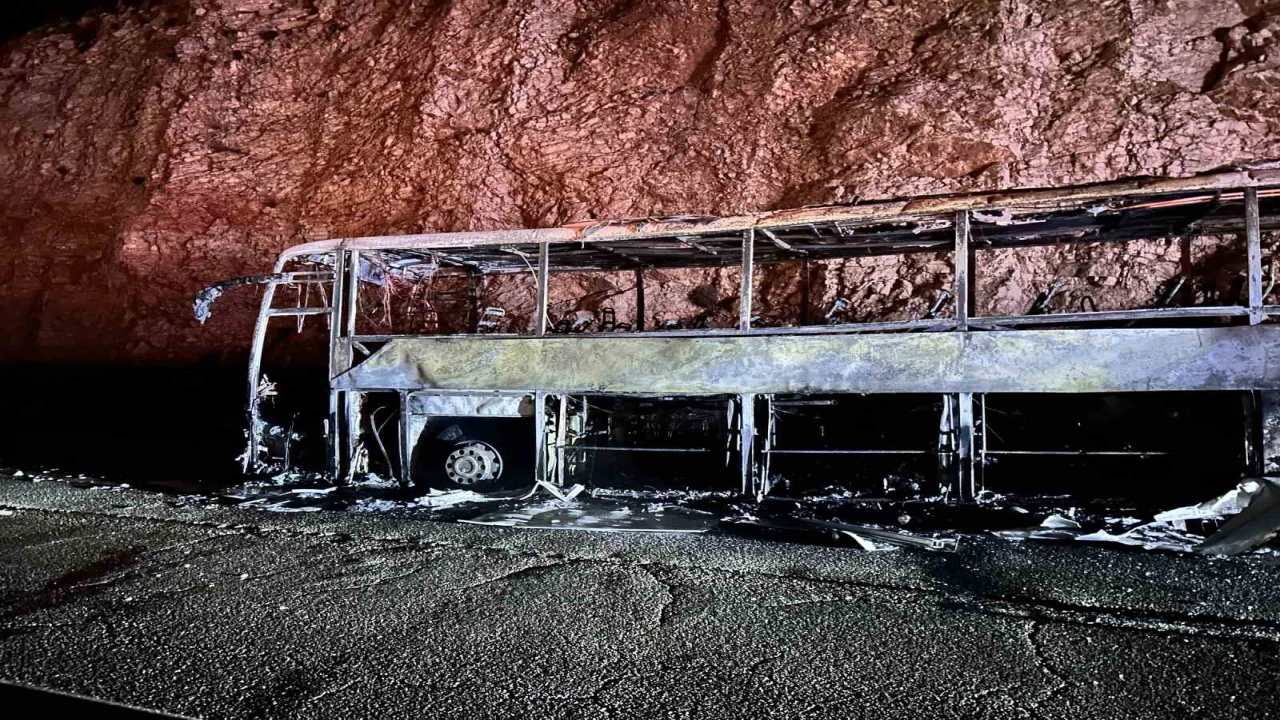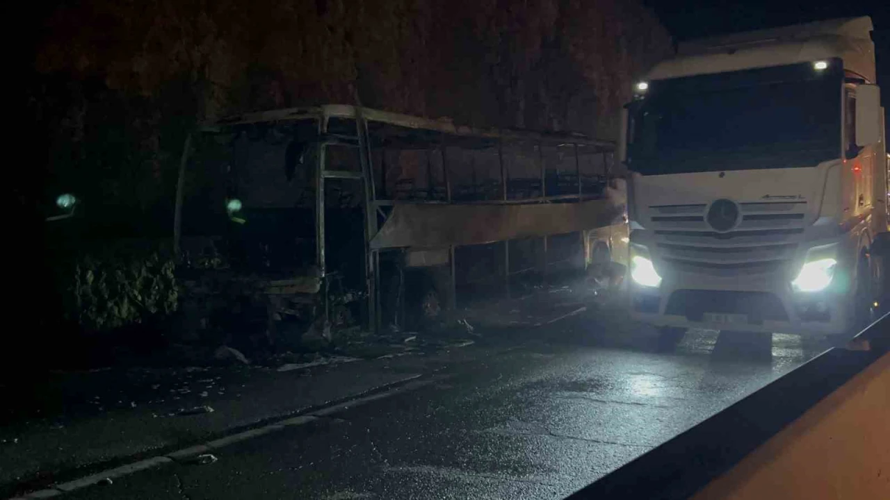 Otobüsün alev topuna döndüğü anlar ise kameraya yansıdı. Jandarma ekipleri yangınla ilgili inceleme başlattı.