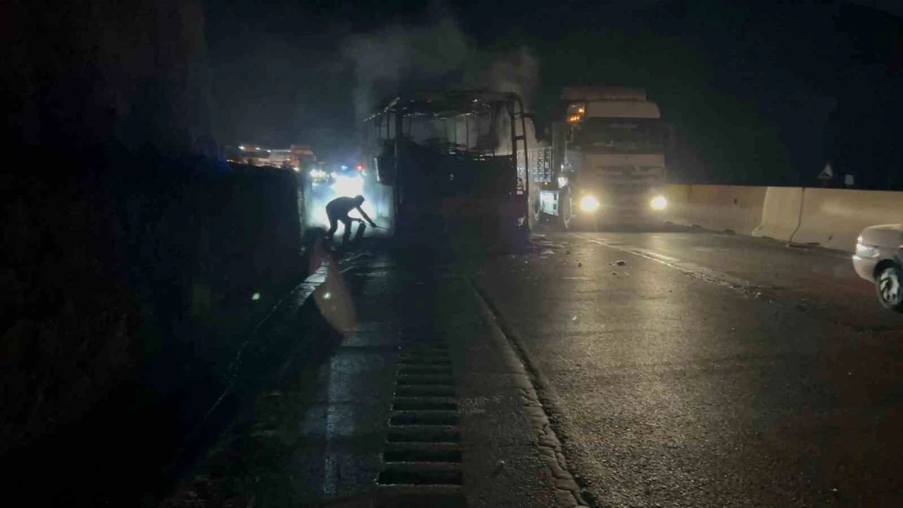 Edinilen bilgiye göre, Antakya'dan yola çıkarak İstanbul'a giden ve içerisinde 20 yolcu olan Jet Turizme ait 31 ADR 94 plakalı yolcu otobüsü, Belen ilçesi Kıcı mevkiinde aniden yanmaya başladı. Kısa sürede otobüs alev topuna dönerken, yolcular korku dolu anlar yaşadı. Olay yerine gelen itfaiye ekiplerinin hızlı müdahalesiyle yangın kontrol altına alındı.