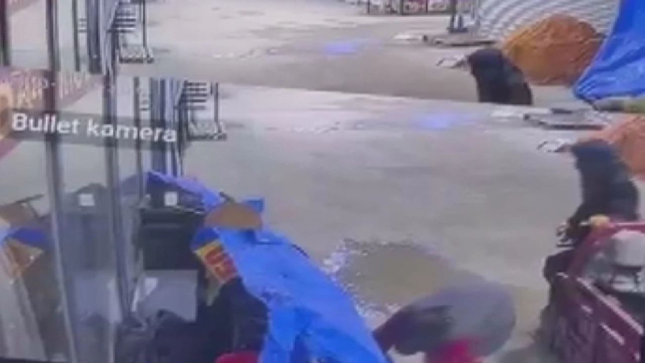 Hatay’da prefabrik çarşıya elektrikli motosikletle gelen hırsızların, ayakkabıları numaralarına bakarak iş yeri önündeki ayakkabıları çaldıkları anlar kameraya yansıdı. Çalınan ayakkabılar nedeniyle yaklaşık 50 bin TL zarara uğrayan esnaf Mehmet Şerif Taş, hırsızların bir an önce yakalanmasını istedi.