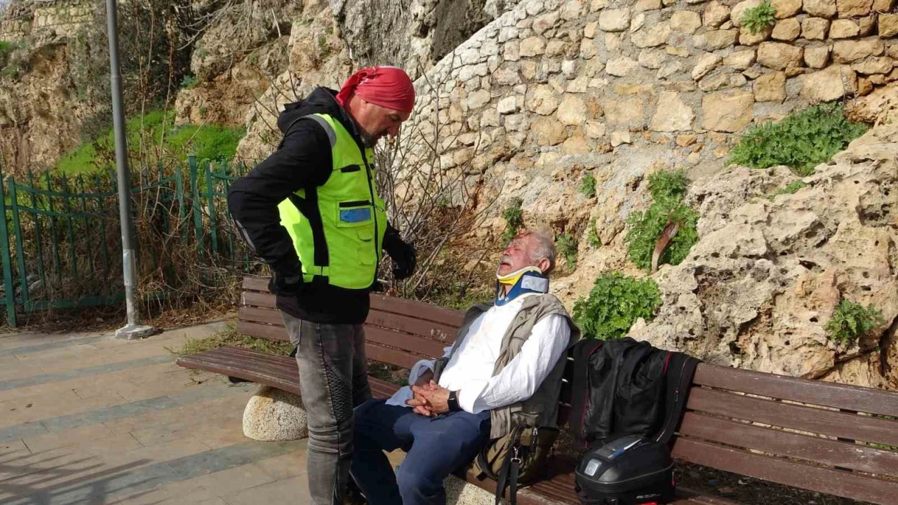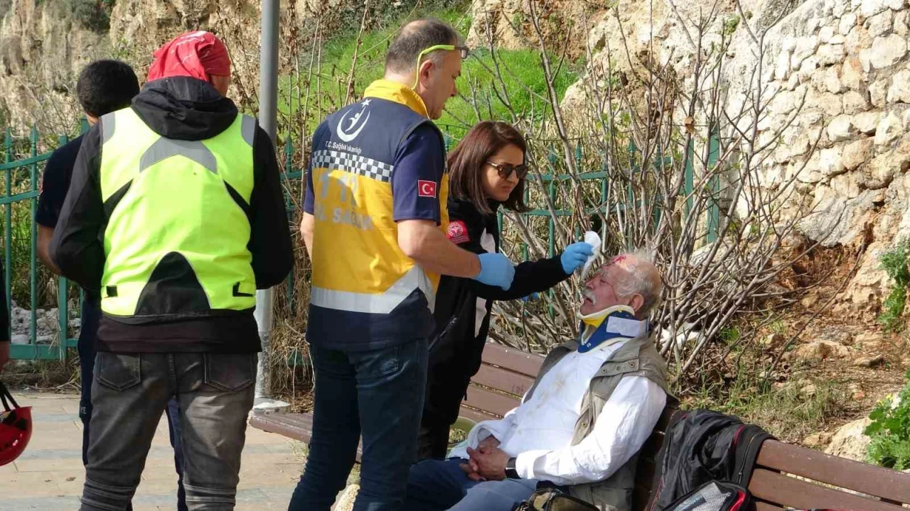 Olay, saat 12.00 sıralarında Antalya’nın Muratpaşa ilçesi Konyaaltı Caddesi üzerinde bulunan Yavuz Özcan Parkı’nda meydana geldi. 112 Acil Çağrı Merkezi’ne bir kişinin kayalıklardan düştüğü ve mahsur kaldığı ihbarı üzerine verilen adrese itfaiye, polis ve sağlık ekipleri sevk edildi. Kısa sürede olay yerine gelen polis ekipleri parkın girişe yasak olan kayalık bölümünde bir kişinin yattığını gördü. Yaklaşık 3 metrelik patika alandan yuvarlandığı anlaşılan ve vatandaşların yardımıyla bulunduğu yerden çıkartılıp, isminin Muharrem E. (67) olduğu öğrenilen yaşlı adama ilk müdahale, motorize 112 ekibi tarafından yapıldı.