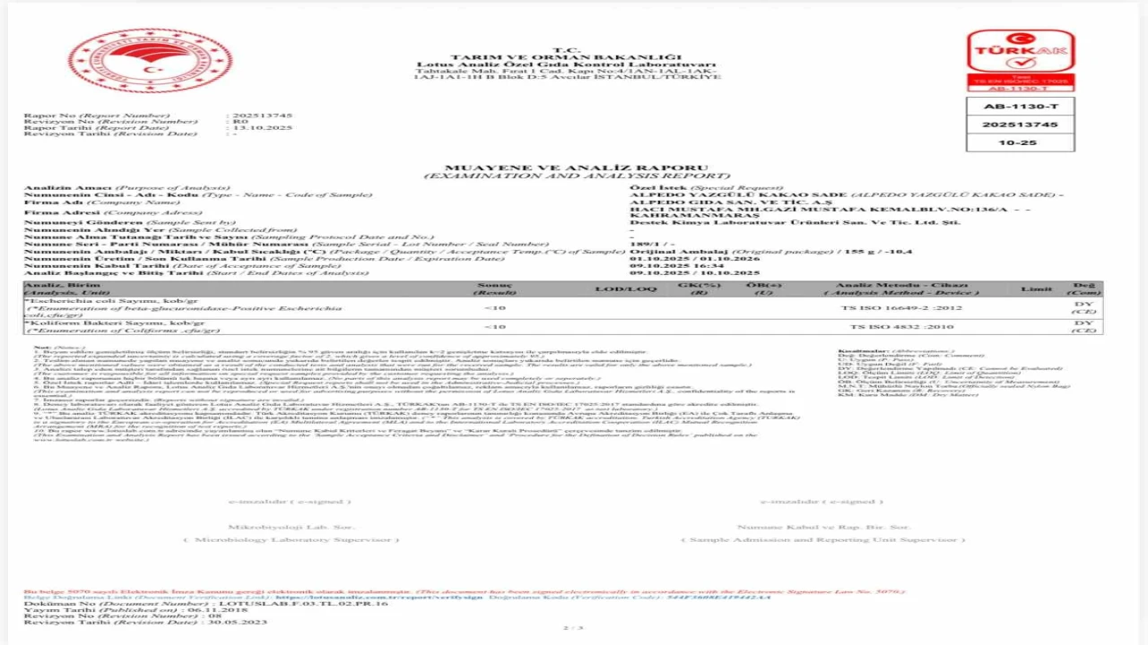 Kahramanmaraş merkezli Alpedo Dondurma, bazı basın organlarında yer alan laboratuvar analiz sonuçlarına ilişkin iddialar hakkında açıklama yaptı. Firma yetkilileri, söz konusu haberlerin asılsız ve hatalı bilgilere dayandığını belirterek, ürünlerin tamamen ihracata yönelik olarak üretilip tüm denetimlerden geçtiğini vurguladı.