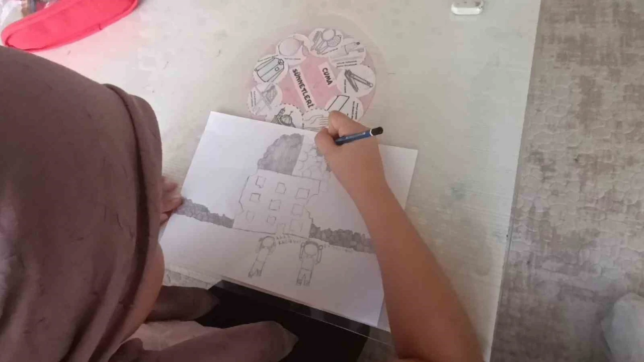 Kur’an Kursu öğrencisi Naime Reyyan Uysal, çalışmaya katılmaktan mutluluk duyduğunu belirterek, "Filistin’deki çocukların bizden dua beklediğini düşünüyorum. Bu resmi çizerken onlar için dua ettim. İnşallah bir gün barış gelir" dedi.