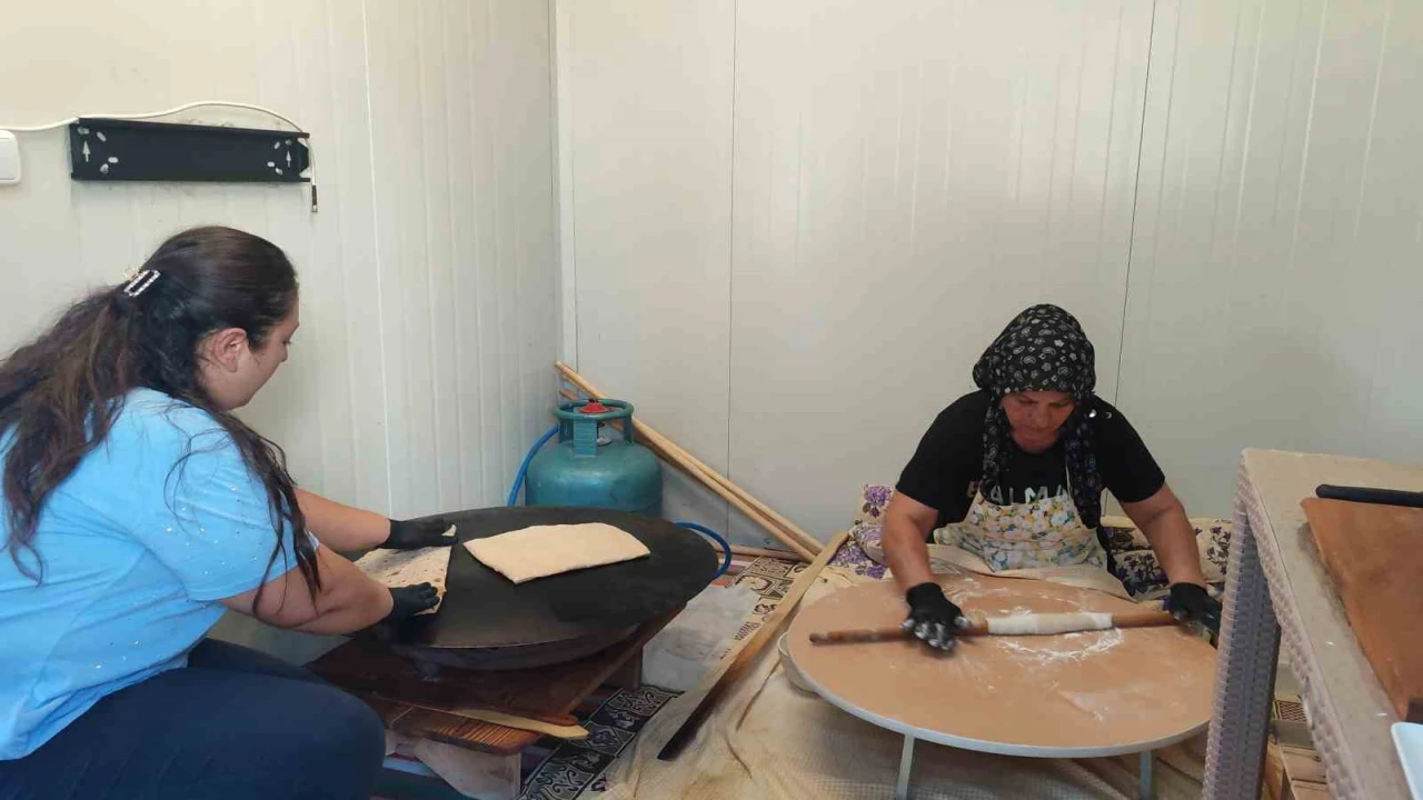 Onikişubat İlçesi Tekerekyolundaki konteyner iş yerinde bazlama gözleme yaparak ev geçimlerini sağlayan anne Fatma Özdemir ve kızı Tuğba Altınköprü, "yapamazsın" demelerine rağmen iş yerlerini açarak kadınlara örnek oldu.