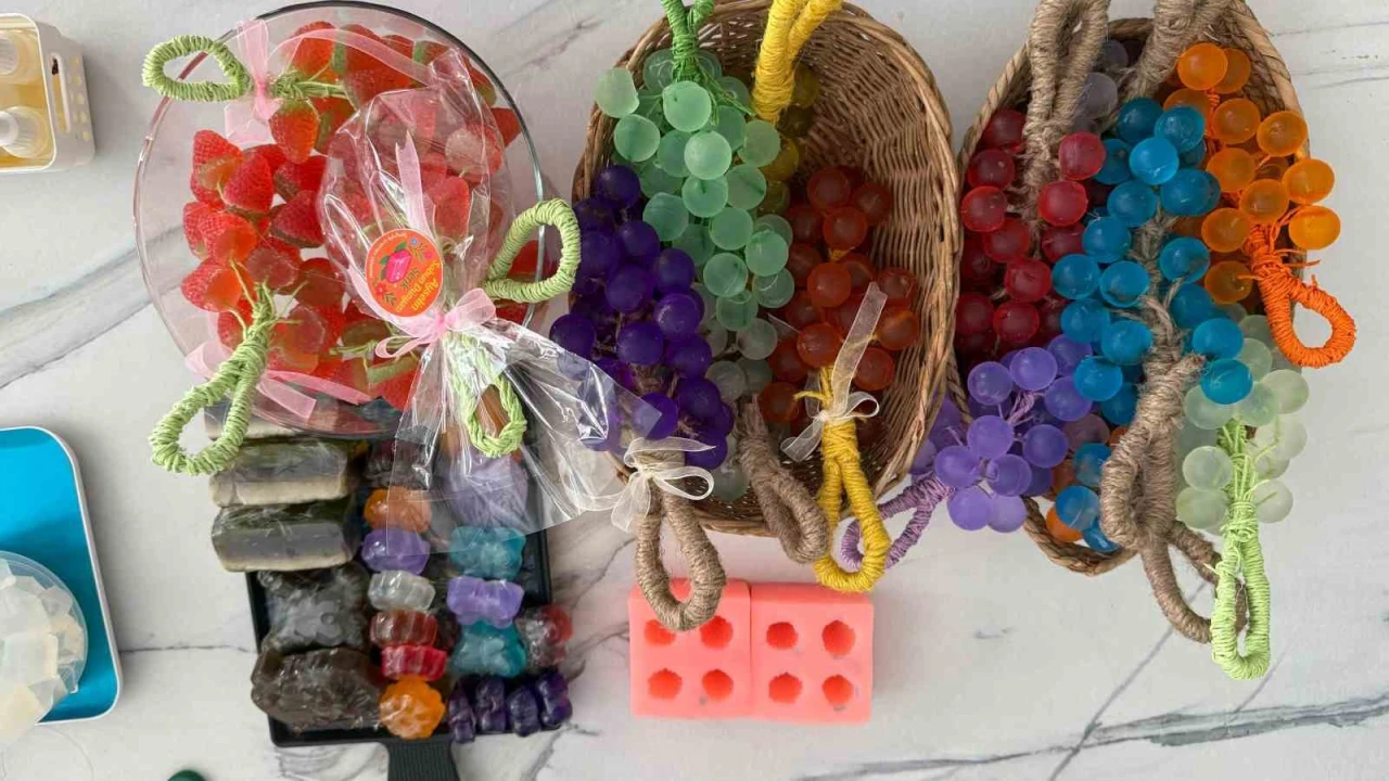 "Çin’de bu üzüm salkım sabun işini ilk olarak bir ev hanımı yapmaya başlamış. Sonra yavaş yavaş Türkiye’de yayılmaya başladı. İnternetten videoları izlemeye başladım, sosyal medya üzerinden eğitimler aldım. ’Neden Serik’te olmasın’ dedim. Başta zor geliyor ama çok keyifli. Bu işin ham maddesi sabun. Şu an şeffaf sabunlarla çalışıyorum. Uçucu yağlar, boyalar kullanıyorum. Kendi hayal gücünüze kalmış bir durum. Tabii ki de cilde zarar olmayacak şekilde malzemeler seçmeniz lazım."