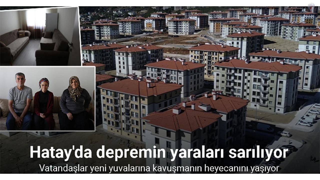 DEPREMİN YARALARININ SARILDIĞI HATAY’DA YILSONUNA KADAR 44 BİN 227 KONUT VE İŞ YERİNİN TESLİM EDİLMESİ PLANLANIYOR. YENİ BİR YAŞAM MERKEZİNİN KURULDUĞU ANTAKYA İLÇESİ GÜLDEREN MAHALLESİ’NDE AFETZEDE VATANDAŞLAR, YENİ YUVALARINA KAVUŞMANIN HEYECANINI YAŞIYORLAR.