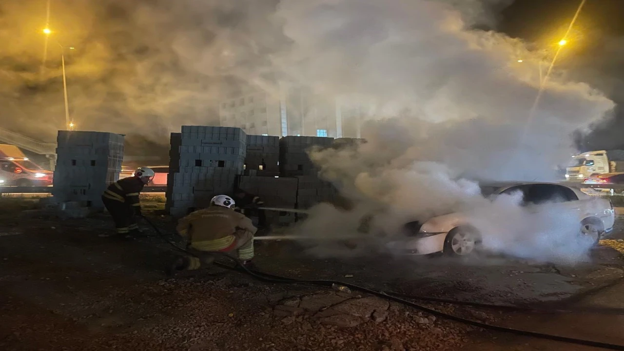 Hatay’da seyir halindeyken yanmaya başlayan otomobilde çıkan yangını itfaiye söndürdü.