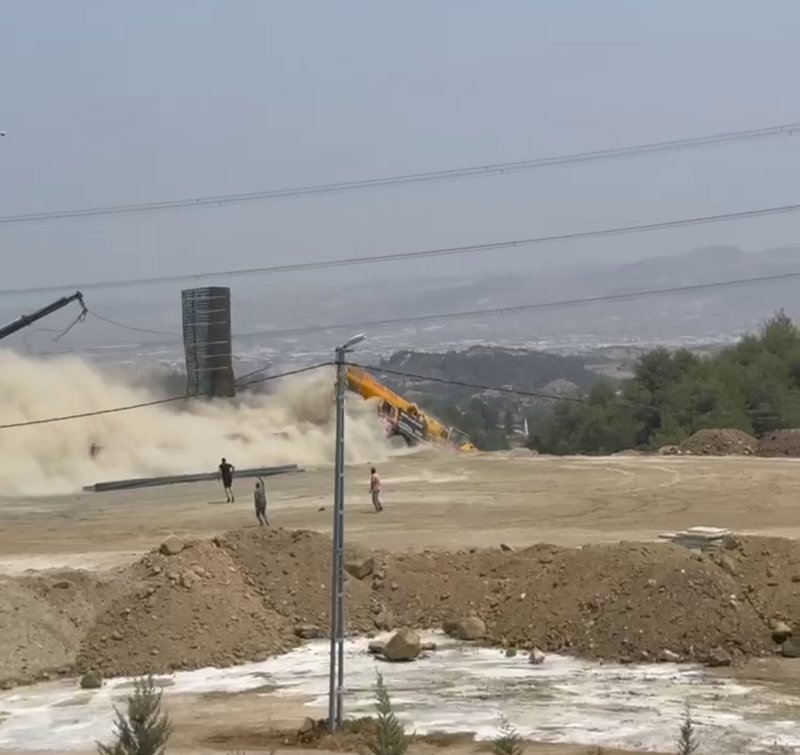 M.E. (21) idaresindeki 15 AG 815 plakalı vinç, freninin arızalanması nedeniyle Karlısu Mahallesi'ndeki bir şantiye alanında park halinde bulunan 31 AIT 373 plakalı tır ve 31 ACU 383 plakalı hafif ticari araca çarpıp uçuruma yuvarlandı.