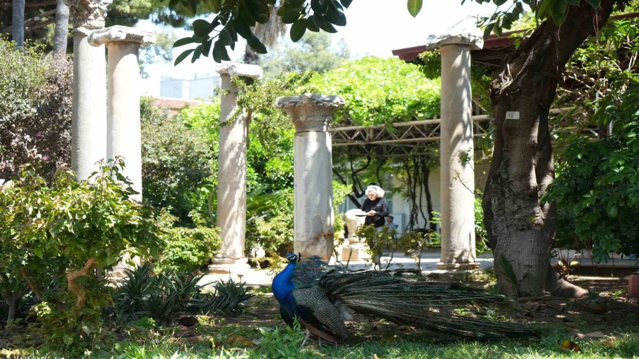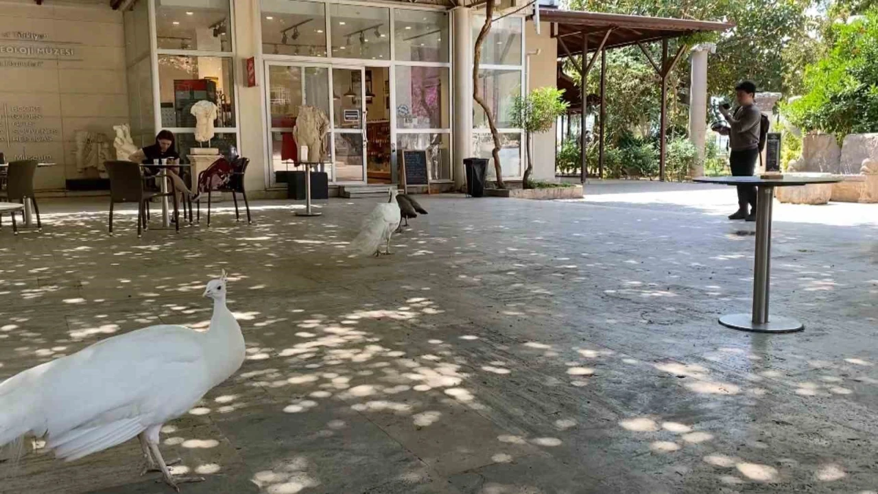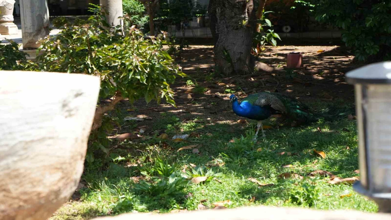 Antalya Arkeoloji Müzesi’nin gölgeliklerle sarılı bahçesinde beyaz ve mavi tüyleriyle süzülen tavus kuşları, tarihi eserlerin arasında sessiz birer ev sahibi gibi dolaşıyor. Ziyaretçiler müze bahçesine adımlarını attığı an, bazen bir çatıda kanat çırpan beyaz tavus kuşuyla, bazen amforaların gölgesinden süzülen göz alıcı yeşil kuyruğuyla karşılaşıyor. Bahçedeki antik kalıntılarla iç içe geçmiş doğal yaşam, müzeyi yalnızca bir sergi mekânı değil, aynı zamanda yaşayan bir açık hava atmosferine dönüştürüyor.