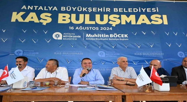 Kaş bölgesine daha sağlıklı hizmet sunabilmek adına hayata geçirilecek çalışmalar hakkında da bilgi veren Başkan Böcek şunları söyledi: “Bölgenin haritasını göz önüne aldığımızda Kınık’tan Kaş merkeze kadar deniz kıyısındaki bölümde içme suyu sıkıntıları başlamıştı. Kaş için tarih sayılabilecek Çayköy’den Kalkan’a içme suyu temin projesini hayata geçireceğiz. Eylül ayında bu ihalemizi gerçekleştireceğiz. 16 mahallemizin içme suyu problemi 50 yıl boyunca çözülmüş olacak. Çayköy’den 6 adet içme suyu kuyumuzla Kalkan’da 6 metre kotundan 310 metre kotuna terfi ile su basacağız ve buradan Kalkan Mahallesi başta olmak üzere Andifli, Bayındır, Belenli, Bezirgan, Gökçeören, İslamlar Mahallesi ve Kalkan olmak üzere bu mahallelerimiz doğrudan bu projeden yararlanacak. Yine Saklıkent hattı bu projeden sonra daha da rahatlayacağı için Kaş merkeze doğru Ağullu, Çukurbağ, Dirgenler, Hacıoğlan, Kasaba, Pınarbaşı, Sarıbelen, Uğrar ve Yeniköy Mahalleleri bu projeden yararlanacak”.