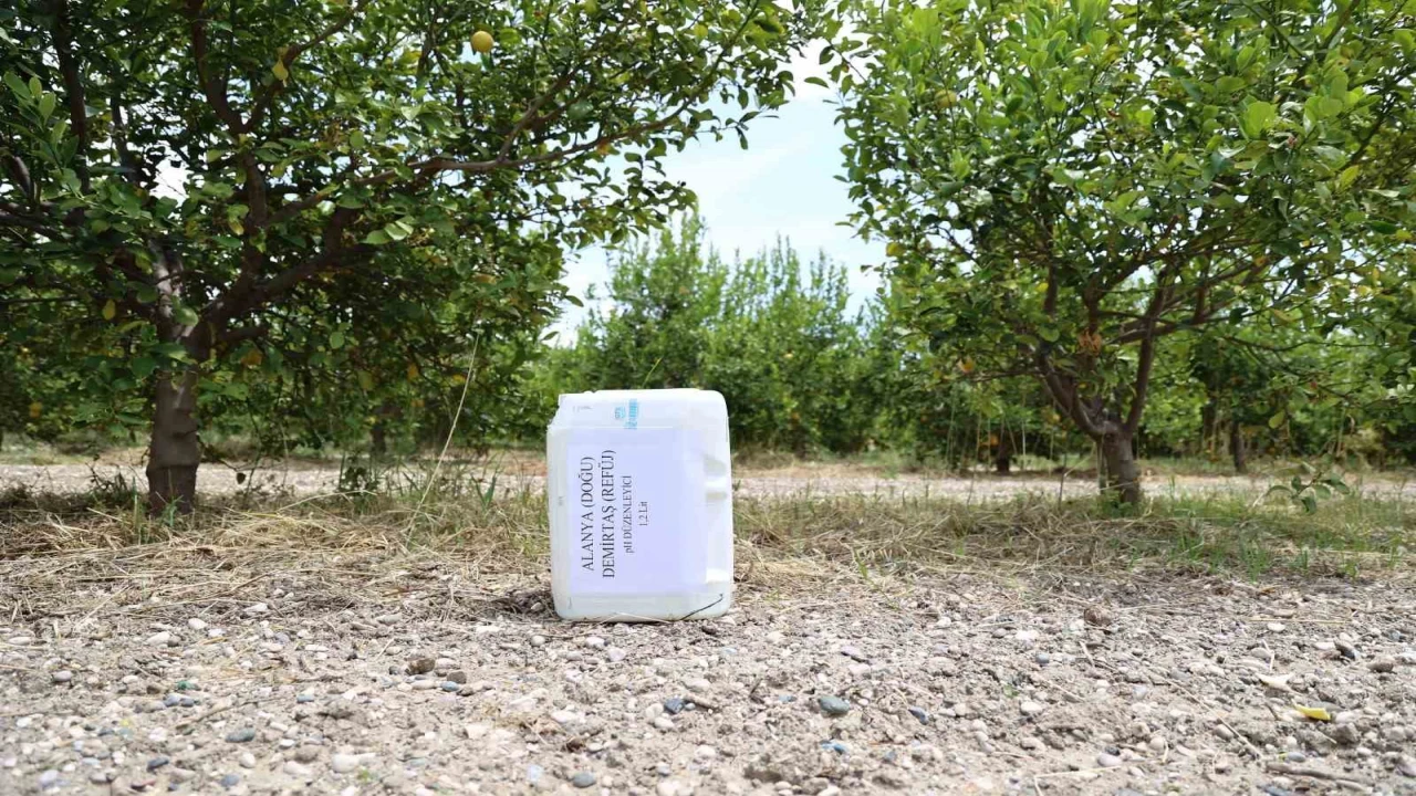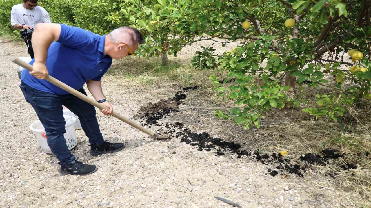 PROJE KAPSAMINDA ÜRETİLEN KATI VE SIVI FERMENTE ÜRÜNLER İLE PH DÜZENLEYİCİ ÜRÜNLER İLK OLARAK DEMRE'DE BİR LİMON BAHÇESİNDE UYGULANDI