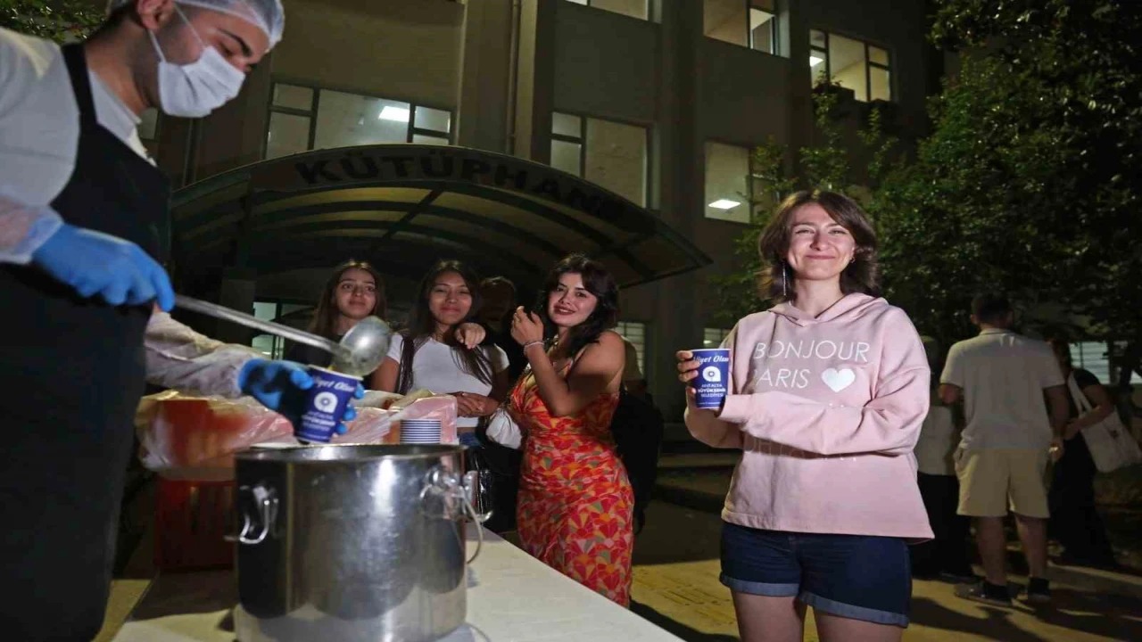 Kütüphanede akşamları ders çalışan öğrencilerin sıcak çorba ile içleri ısınırken, bir süre derse mola verme imkanı sağlanıyor. Sınav haftası olan 26 Mayıs-4 Haziran tarihleri arasında öğrencilere mercimek, tarhana, ezogelin ve domates çorbası ikramı devam edecek.