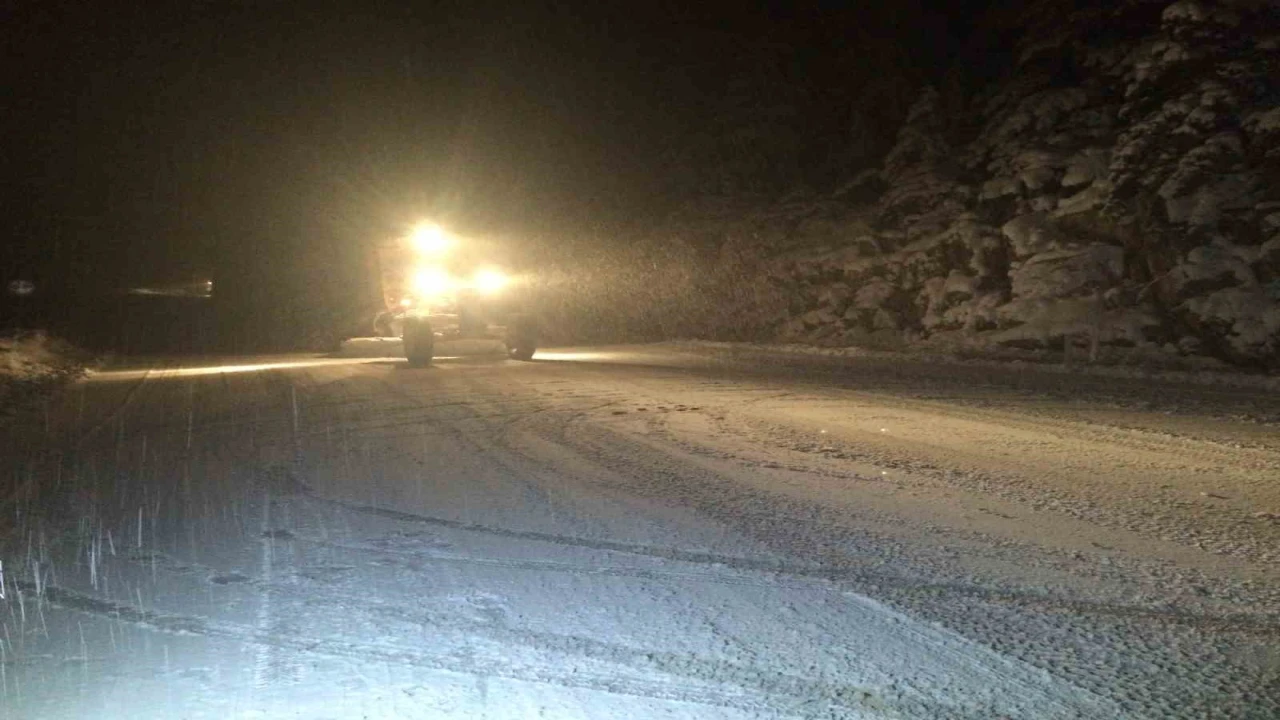 Bölgede etkili olan yoğun kar yağışı ile birlikte Karayolları ekipleri iş makinası ile kar temizleme ve tuzlama çalışmaları başlattı. 1825 metre rakımlı Alacabel’de kar kalınlığı yer yer 5-10 santimetreye ulaştı.