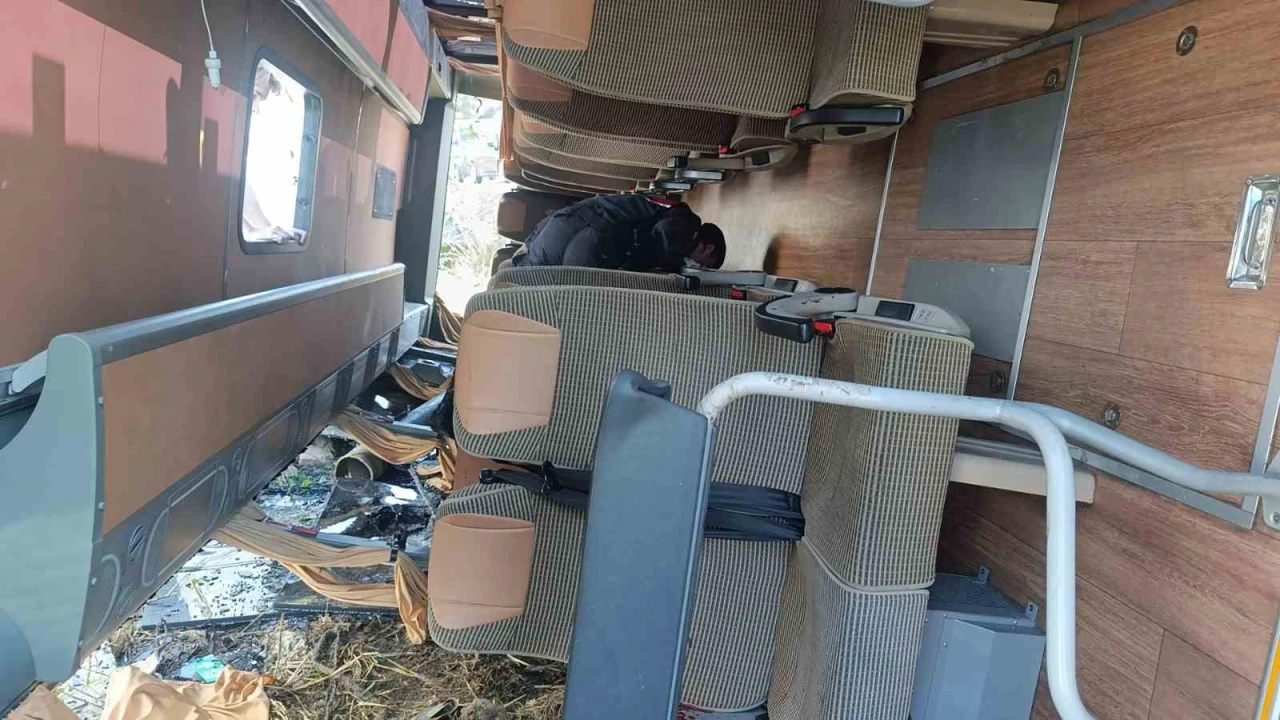 Antalya’nın Manavgat ilçesinde tur midibüsünün şarampole devrilmesi sonucu meydana gelen ve sürücü ile 18 Rus uyruklu turistin yaralandığı kazaya ilişkin güvenlik kamera görüntüleri ortaya çıktı. Görüntülerde virajı geçen midibüsün dönüş yapmayıp direk şarampole devrilmesi ve midibüsün içindeki turistleri kurtarma çalışmaları yer aldı. Kazayı duyup olay yerine gelen sürücünün annesi ise oğlunun fazla çalıştırıldığını ileri sürerek, "Eve geldiğinde ayaklarının ağrısından uyuyamıyor. Biraz işi az yazın, şoförü çok alın" dedi.