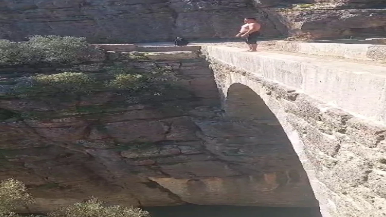 Manavgat ilçesine bağlı Beşkonak Mahallesi’nde bulunan tarihi Oluk Köprü üzerine çıkan Mustafa Ünal, yaklaşık 20 metre yükseklikten kendini soğuk suya bıraktı. Ünal, daha sonra yüzerek kıyıya çıkmayı başardı. O anlar ise cep telefonu ile görüntülendi.