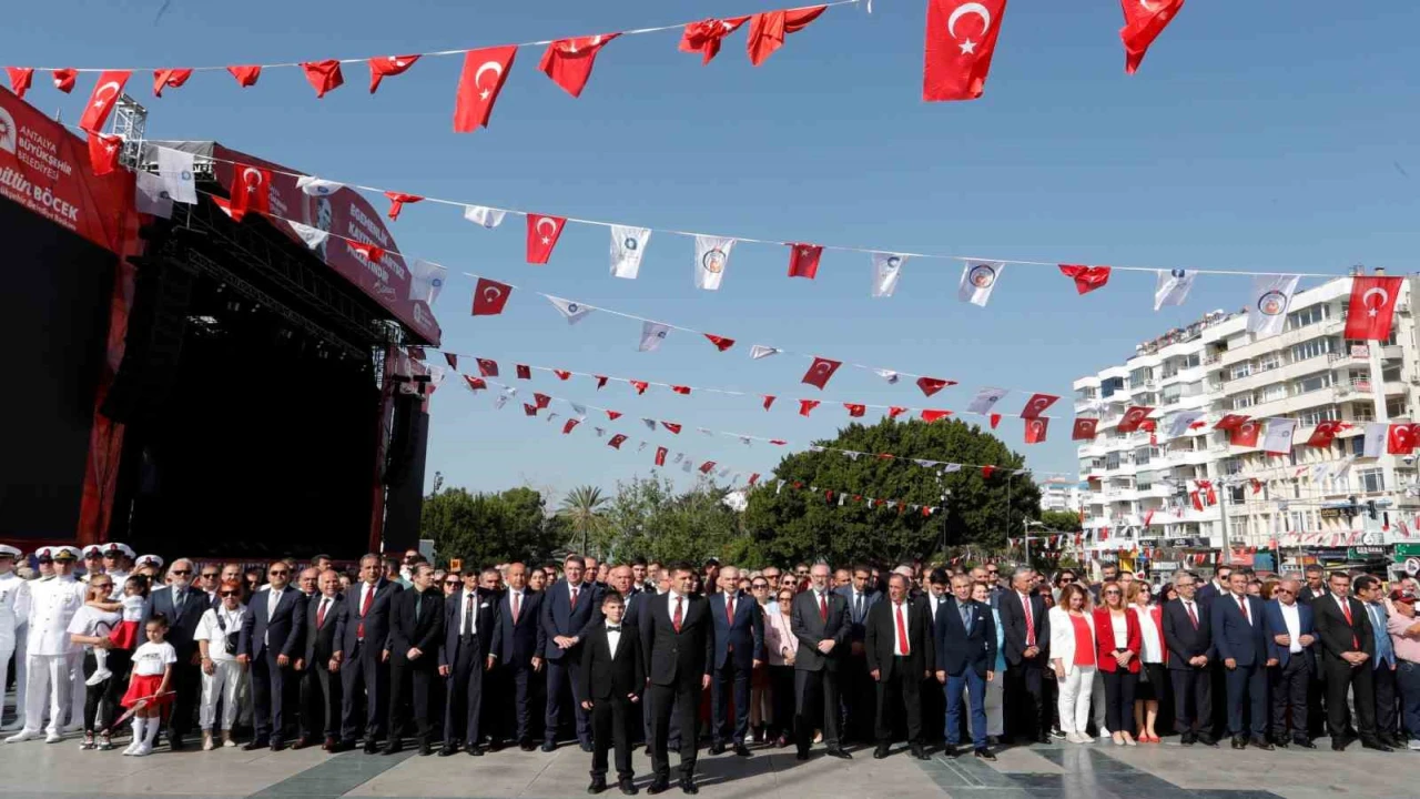 Antalya’da 23 Nisan Ulusal Egemenlik ve Çocuk Bayramı kutlamaları çelenk sunma töreniyle başladı.