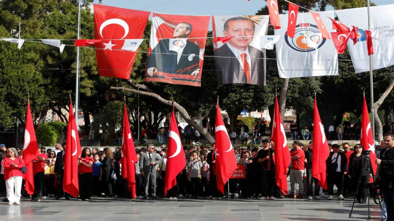 Türkiye Büyük Millet Meclisi’nin açılışının 105’inci yıl dönümü ve 23 Nisan Ulusal Egemenlik ve Çocuk Bayramı, Antalya’da Cumhuriyet Meydanı’nda bulunan Ulusal Yükseliş Anıtı’na çelenk sunma töreniyle başladı. Ellerinde Türk bayrakları ve kırmızı-beyaz kıyafetleriyle toplanan öğrenciler, saygı duruşunda bulunarak İstiklal Marşı’nı okudu. Ardından Antalya İl Milli Eğitim Müdürü Salih Kaygusuz, bir öğrenciyle birlikte meydanda bulunan Atatürk heykeline çelenk sundu.