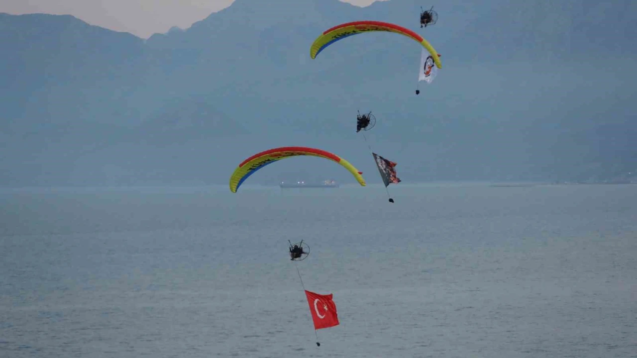 ANTALYA'DA BİNLERCE VATANDAŞIN KATILIMI İLE DÜZENLENEN FENER ALAYI'NDA 400 METRELİK DEV TÜRK BAYRAĞI TAŞINARAK 19 MAYIS ATATÜRK'Ü ANMA GENÇLİK VE SPOR BAYRAMI COŞKUSU YAŞANDI. FENER ALAYI'NA PARAMOTORCULAR DA GÖKYÜZÜNDEN EŞLİK ETTİ.