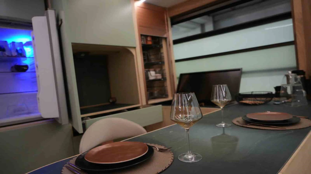 Tiny house ve kapsül ev konseptiyle fuarda yer alan firmalardan biri, doğa dostu yaklaşımı ve teknolojik altyapısıyla dikkat çekti. Firma yetkilisi Yağmur Döner, "Bir senedir kapsül evimizle uğraşıyoruz. Bu showroom amaçlı ürettiğimiz modelimizi bu fuara hazırladık. Yeni bir firmayız ve ilk defa fuara katılıyoruz" dedi. Döner, geliştirdikleri modelin içinde pis su arıtma sistemi bulunduğunu ve bu sistemin suyu filtreleyerek bahçe sulamada kullanıma uygun hale getirdiğini belirtti. Ayrıca evin çatısının tamamının esnek güneş panelleriyle kaplı olduğunu söyleyen Döner, "Şehirden kaçmak isteyenler için minimum alanda maksimum konforu hedefledik. Biz de öyle insanlarız çünkü" dedi.
