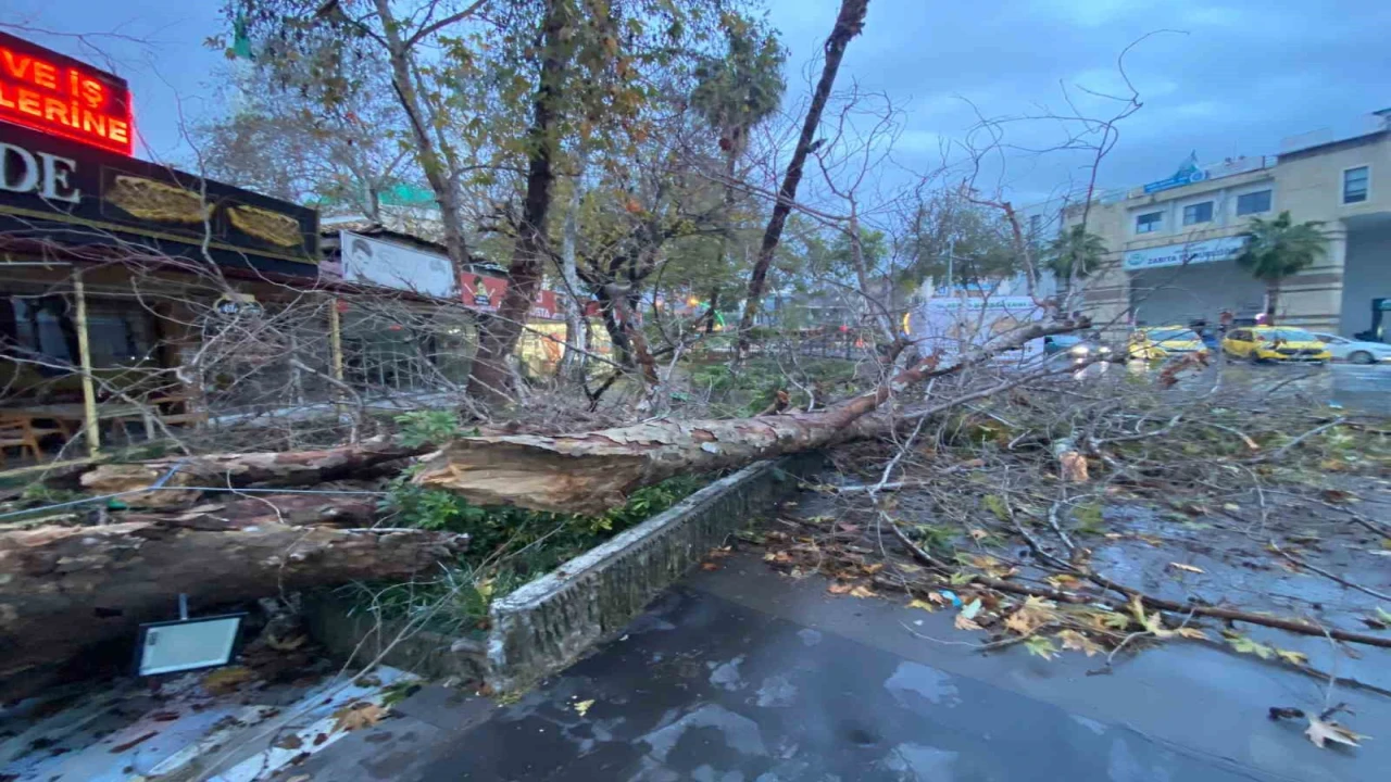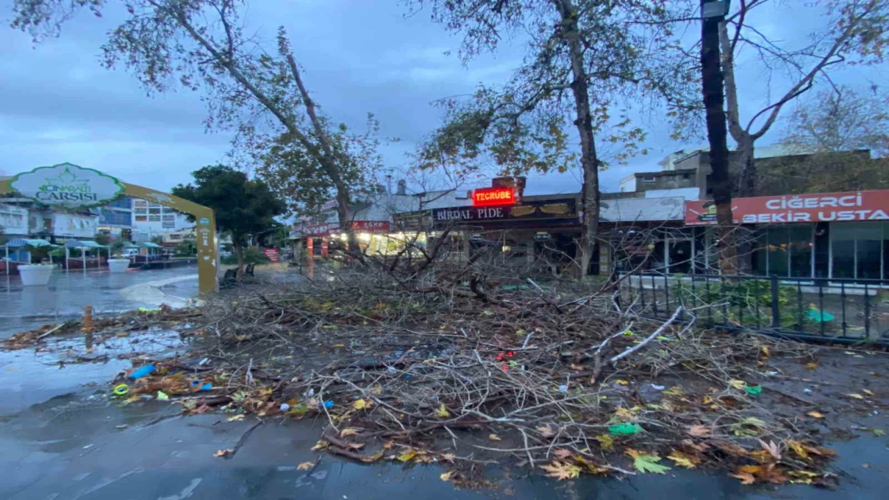 Antalya’da etkili olan aşırı yağışlar nedeniyle asırlık çınar ağacı devrildi.