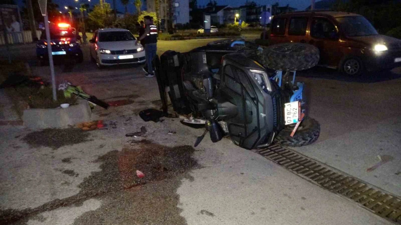 Kaza, Side Mahallesi Fatih Sultan Mehmet Caddesi’nde akşam saatlerinde meydana geldi. Edinilen bilgiye göre, Nurgül A.’nın kullandığı 07 BCJ 762 plakalı ATV, Side Salı Pazarı kavşağında sürücüsünün direksiyon hakimiyetini kaybetmesi sonu takla attı.