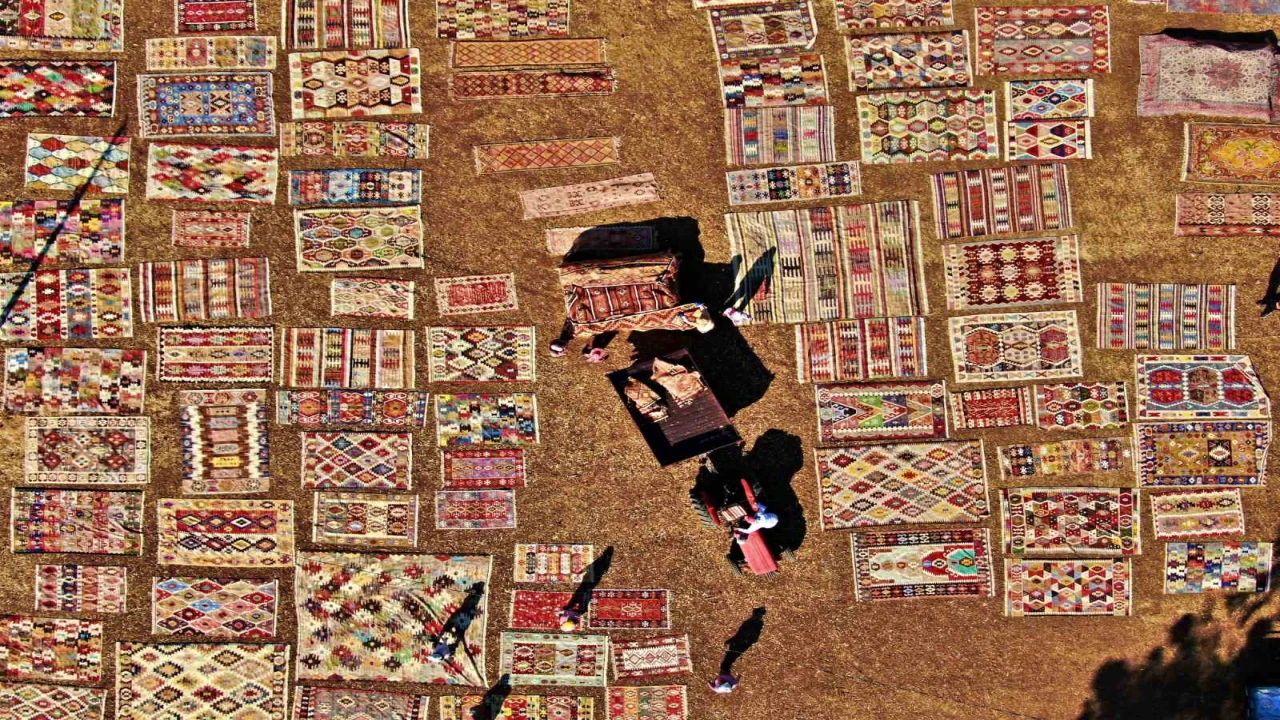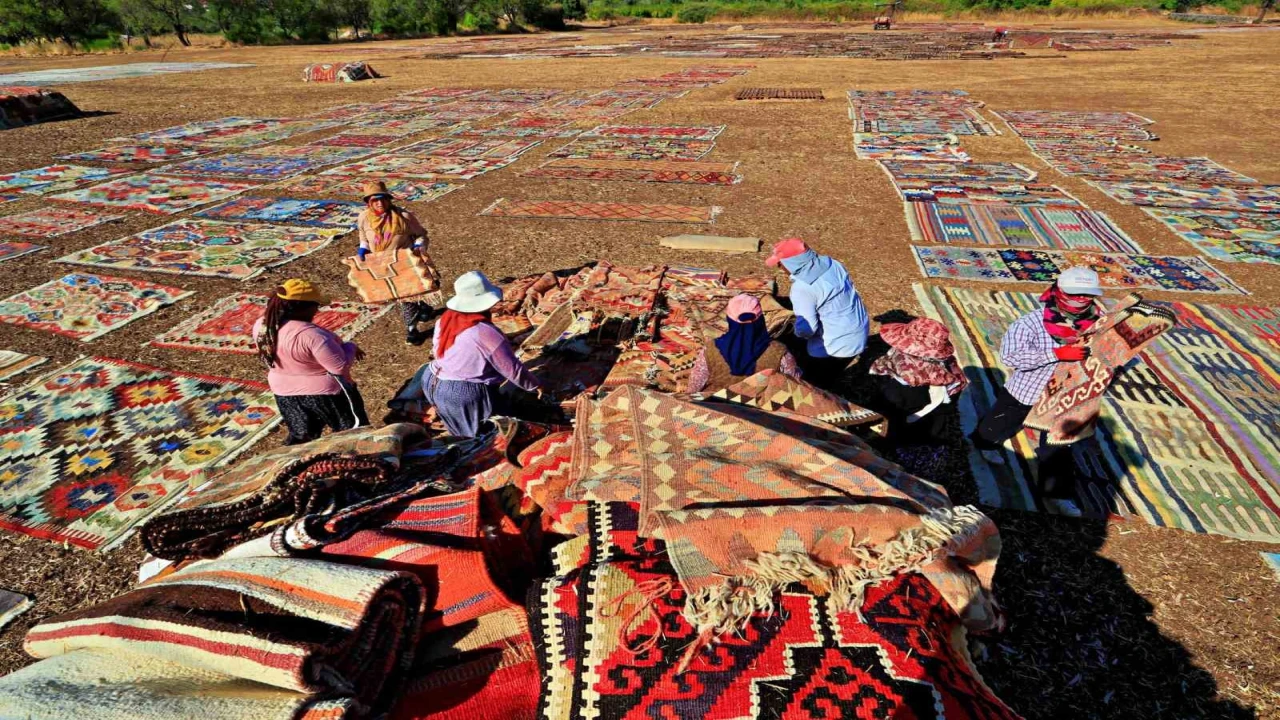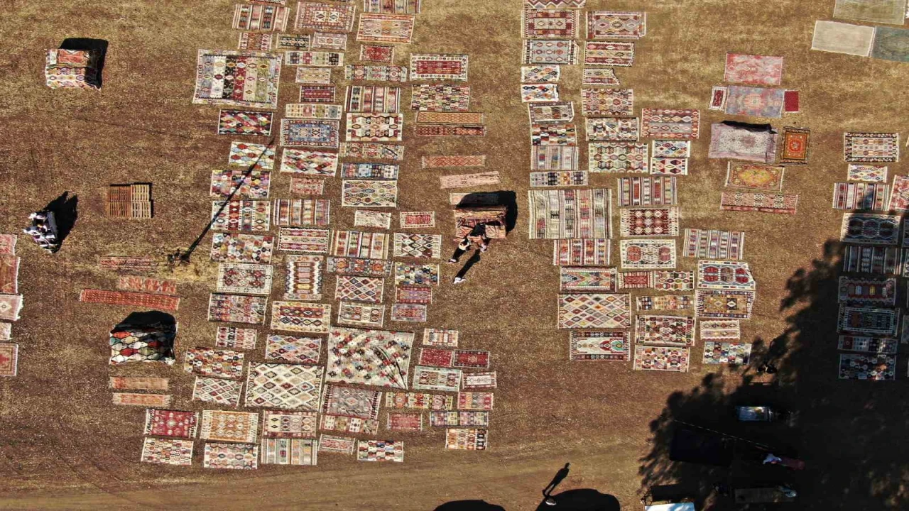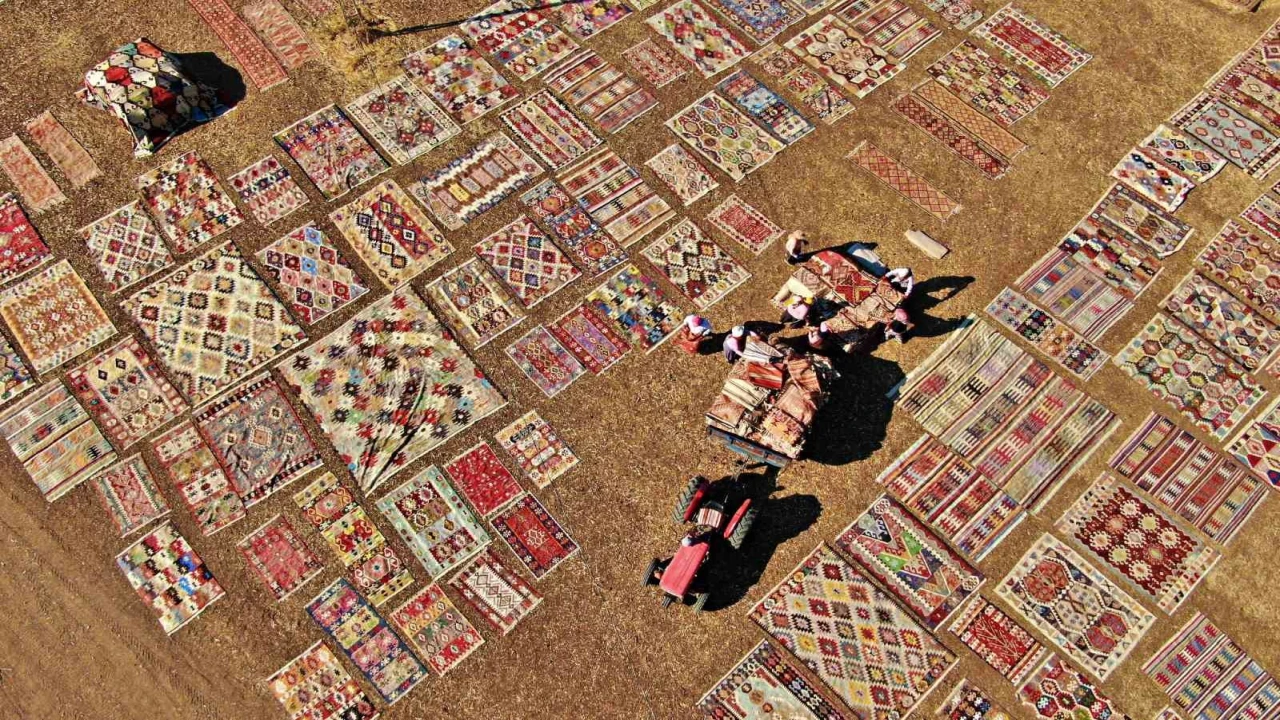 Döşemealtı’nda kışın buğday ekilen tarlalarda, bu kez mahsul değil değeri milyonları bulan el dokuması halı ve kilimler hasat edildi. Her yıl yaz aylarının gelmesi ile birlikte aralarında yüzlerce yıllık tarihi olan yurt içi ve yurt dışından getirilen binlerce halı ve kilim itina ile tamir edilmesinin ardından mikroplardan arındırılmak üzere steril havuzlara sokuluyor. Buradaki işlemlerin ardından halı ve kilimler tarlalarda güneşe serilerek renkleri soldurulup pastele dönüşmesi sağlanıyor. Serim işleminin ardından görsel bir şölen oluşturan binlerce halı güneşin altında belirli aralıklarla çevrilerek nemi ve sıcağı en iyi şekilde alarak renklerin tonlamasının sağlamlaşması sağlanıyor.