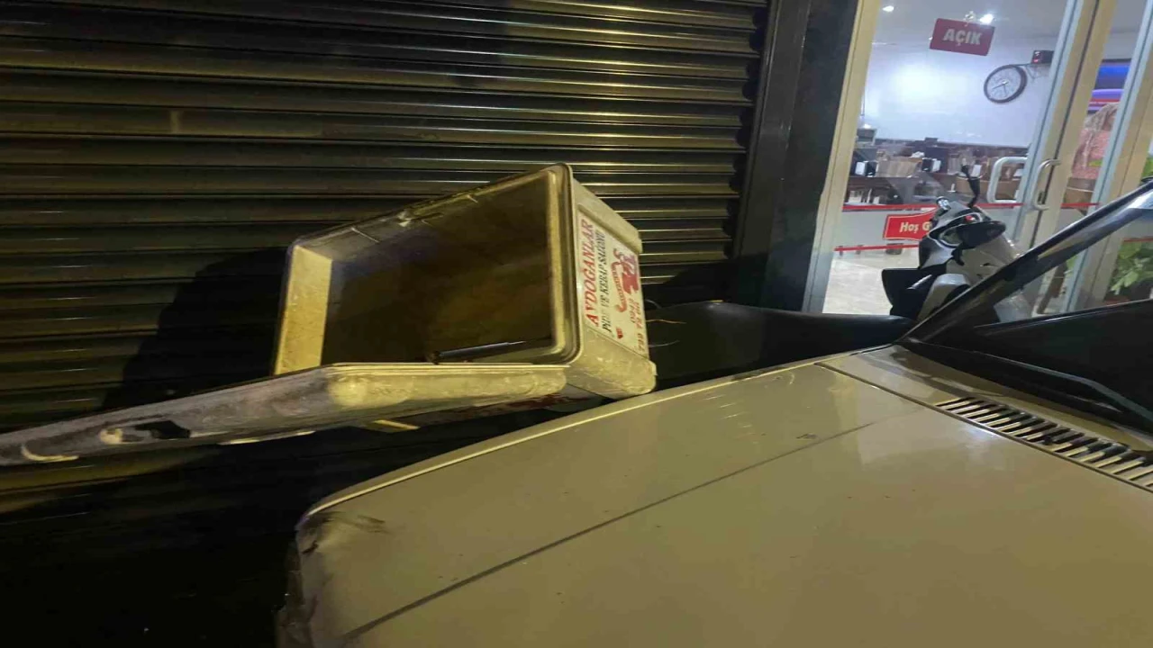 Antalya’nın Serik ilçesinde kamyonetin çarpmasıyla yoldan çıkan TOFAŞ marka otomobil, iş yerine ve park halindeki motosiklete çarptı. Kazada şans eseri yaralanan olmadı.