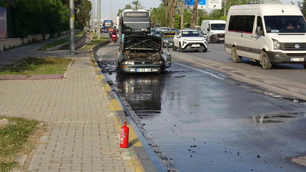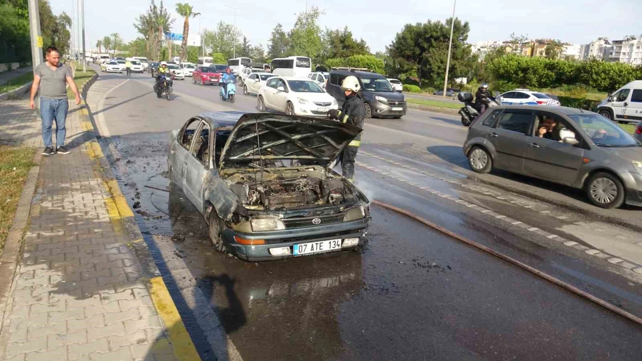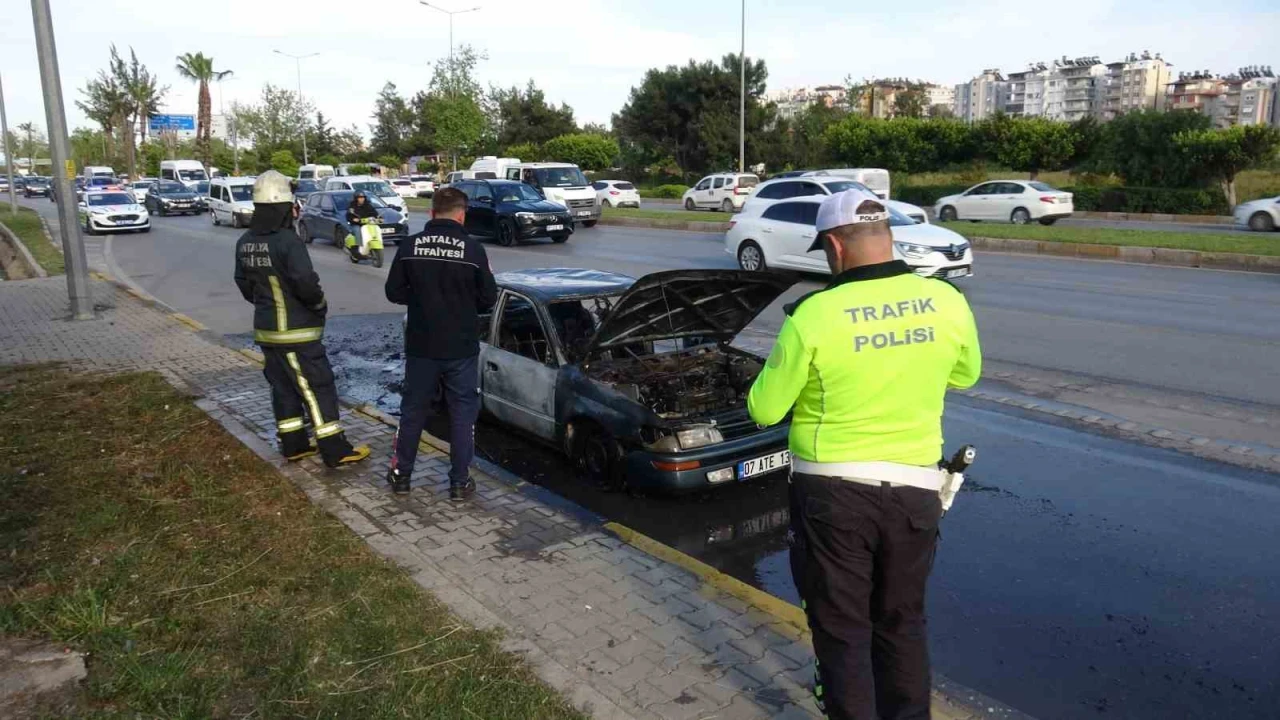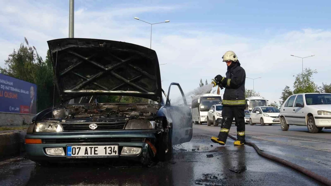 ANTALYA'DA EVİNE DOĞRU İLERLERKEN OTOMOBİLİNİN MOTOR KISMINDAN DUMAN ÇIKTIĞINI FARK EDEN SÜRÜCÜ, ARACI YOL KENARINA ÇEKTİ. ANCAK, HIZLA BÜYÜYEN ALEVLER, SÜRÜCÜSÜNÜN GÖZLERİ ÖNÜNDE OTOMOBİLİ KÜLE ÇEVİRDİ.