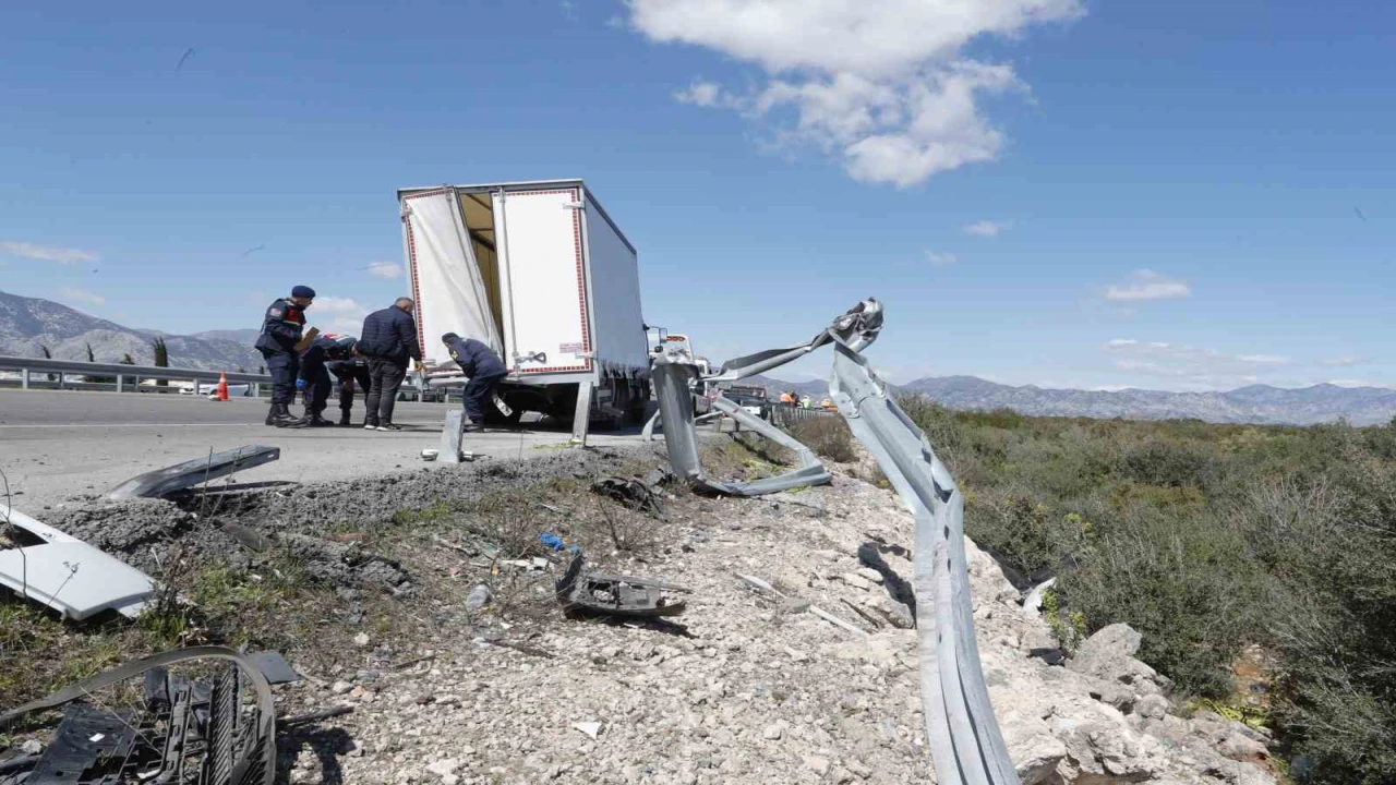 Antalya’da kamyonete arkadan çarpan ve hurdaya dönen lüks otomobil sürücüsü hayatını kaybederken, kamyonette bulunan 2 kişi ise yaralandı.