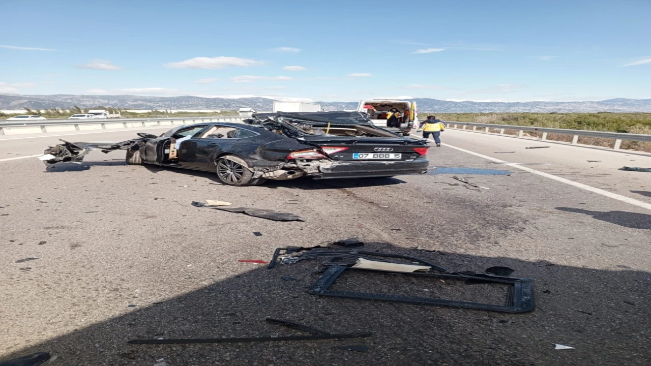 ANTALYA’DA KAMYONETE ARKADAN ÇARPAN VE HURDAYA DÖNEN LÜKS OTOMOBİL SÜRÜCÜSÜ HAYATINI KAYBEDERKEN, KAMYONETTE BULUNAN 2 KİŞİ İSE YARALANDI.