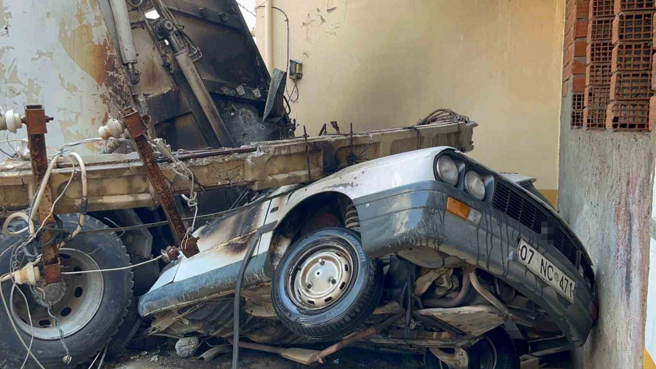 Antalya’nın Alanya ilçesinde belediyeye ait çöp kamyonunun rampada freninin boşalması sonucu meydana gelen kazada 2 otomobil ezildi, araçlardan birinde yangın çıktı. İtfaiye ekiplerinin hızlı müdahalesiyle yangın eve sıçramadan söndürüldü. Olayda iki araç kullanılamaz hale geldi.