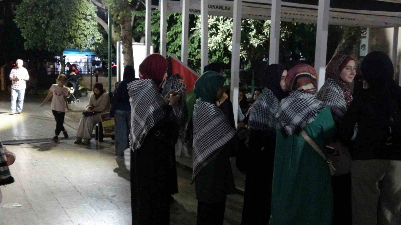 Nurseda Aykut adlı vatandaş ise, "Bu insanlık dışı soykırıma dualarımızla destek olmaya geldik. Gemilerde İsrail tarafından alıkonulan kardeşlerimize ve Gazze’de mahsur kalan kardeşlerimize destek olmak için buradayız. Bu akşam dualarımızla destek oluyoruz" dedi.