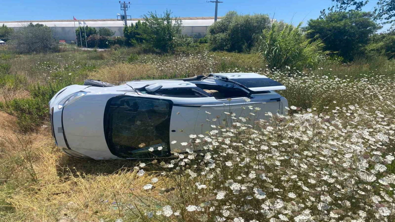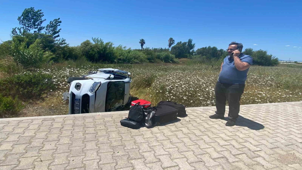 Antalya’nın Serik ilçesinde şarampole devrilen hafif ticari aracın sürücüsü kazayı yara almadan atlatırken, yolcu konumundaki eşi ise yaralandı.