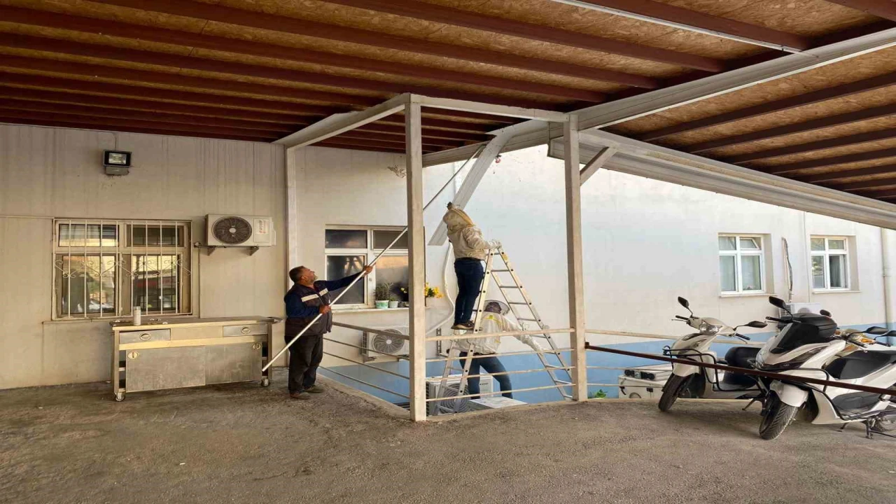Antalya’nın Serik ilçesinde devlet hastanesinin bahçesinde oğul veren arılar yuvalandığı yerden alındı.