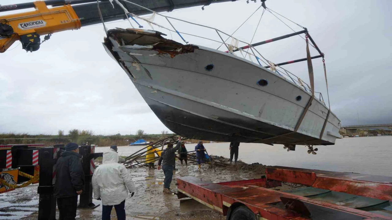 Antalya’nın Aksu ilçesinde metrekareye 190 kilogramı aşan yağışın ardından Aksu Çayı çevresinde oluşan hortumun milyonlarca lira değerindeki tur ve balıkçı teknelerinde yol açtığı büyük yıkımın ardından, onarımı mümkün olan tekneler vinç ve kepçe yardımıyla düzenlenen alana taşınarak yeniden turizm sezonuna hazırlanıyor.