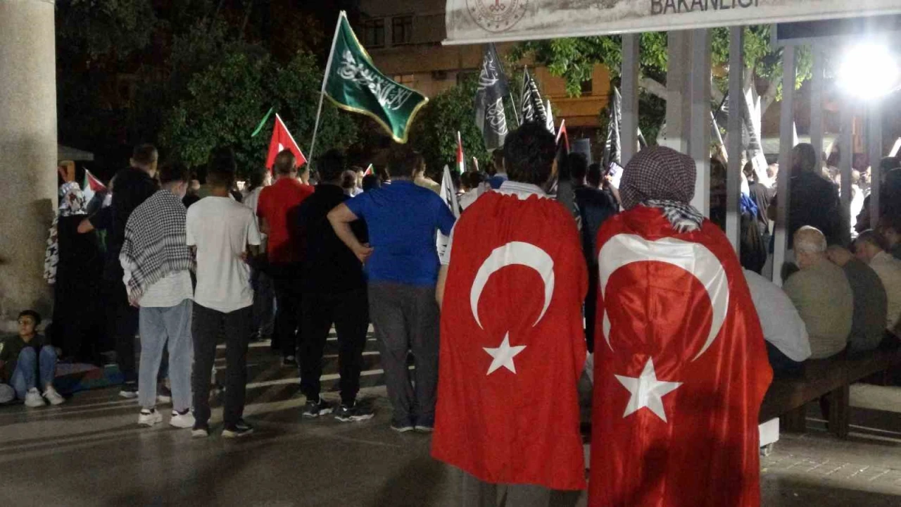 Manavgat Kudüs Platformu öncülüğünde bir araya gelen yaklaşık 100 kişilik grup, Külliye Camii’nde kılınan yatsı namazının ardından Manavgat Irmağı üzerindeki teknede sloganlar eşliğinde basın açıklaması yaptı ve dua etti.