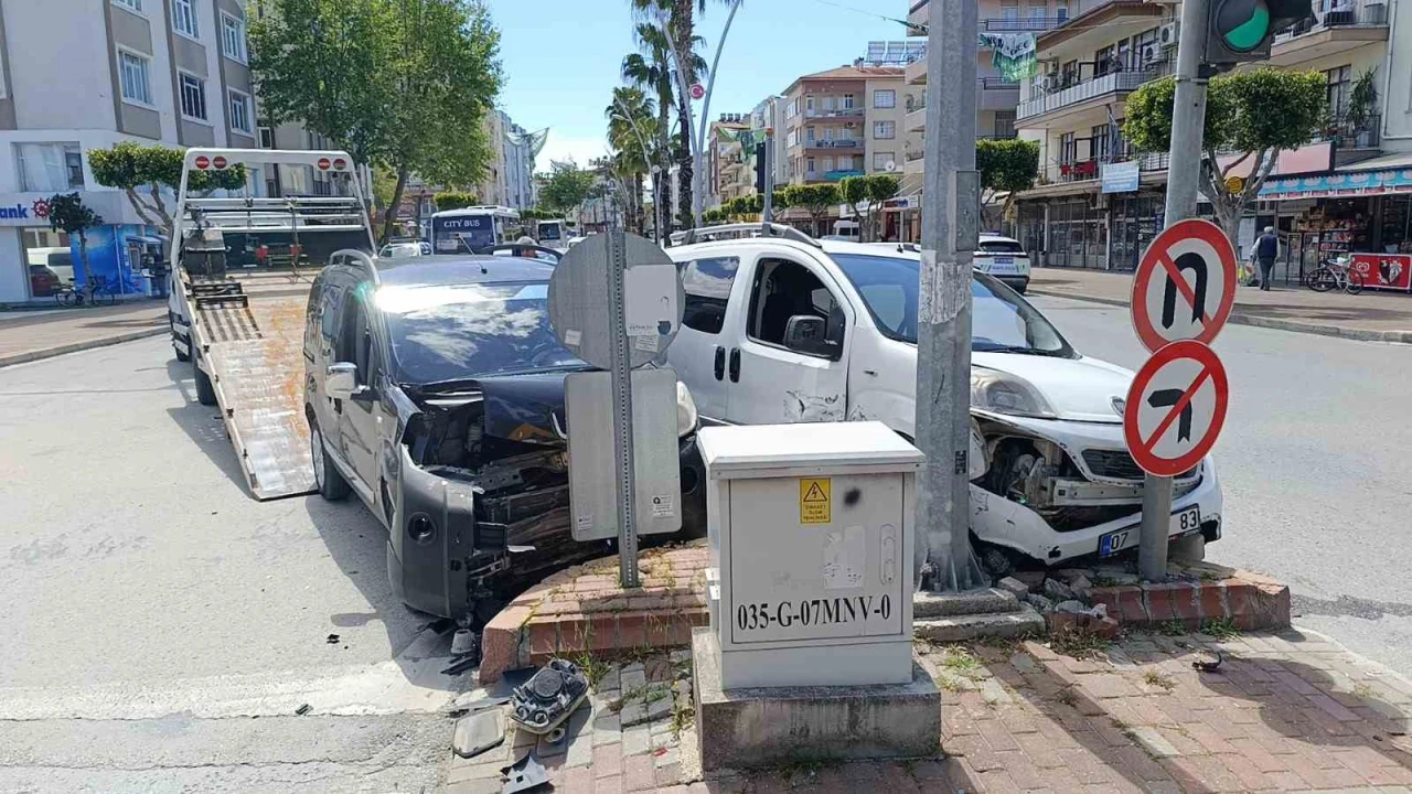 ANTALYA'NIN MANAVGAT İLÇESİNDE KIRMIZI IŞIK İHLALİ SONUCU 2 HAFİF TİCARİ ARACIN ÇARPIŞTIĞI TRAFİK KAZASINDA 1 KİŞİ YARALANDI