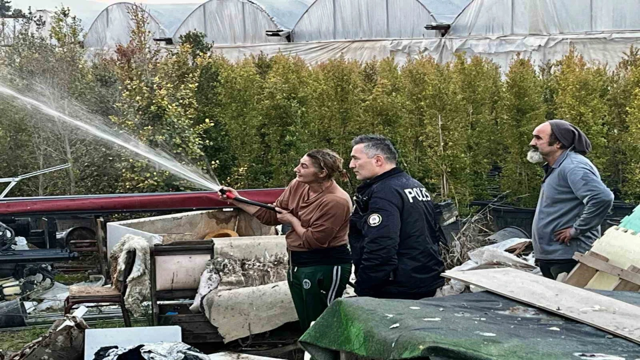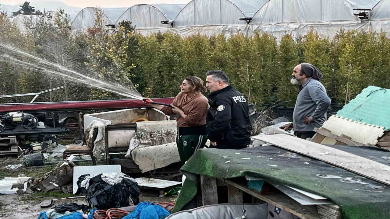 Kısa sürede büyüyen yangın, konteyner evin tamamını sardı. Alevler nedeniyle evin içindeki eşyalar ve yapı tamamen yanarak kömür haline gelirken, konteyner evde yaşayan iki kedi yangında telef oldu. Yoğun dumanın yükseldiği yangına itfaiye ekipleri hızla müdahale ederken, evde yaşayan kadının da hortumla söndürme çalışmalarına destek verdiği görüldü.