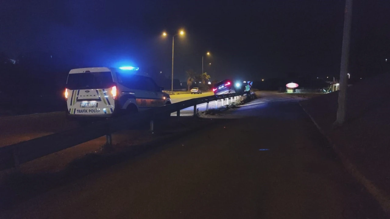 ANTALYA’NIN MANAVGAT İLÇESİNDE SÜRÜCÜSÜNÜN DİREKSİYON HAKİMİYETİNİ KAYBETTİĞİ LÜKS OTOMOBİL YOL KENARINDAKİ BARİYERLERİN ÜZERİNE ÇIKTI. KAZADA ŞANS ESERİ YARALANAN OLMADI.
