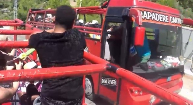 Antalya’nın Alanya ilçesinde şoför turistlerin su savaşına katılmak için yerinden kalkınca, içerisinde 20’den fazla kişiyle geriye hareket ederek otomobile çarpıp son anda şarampole yuvarlanmaktan kurtulan safari otobüsüyle ilgili soruşturma başlatıldı.
