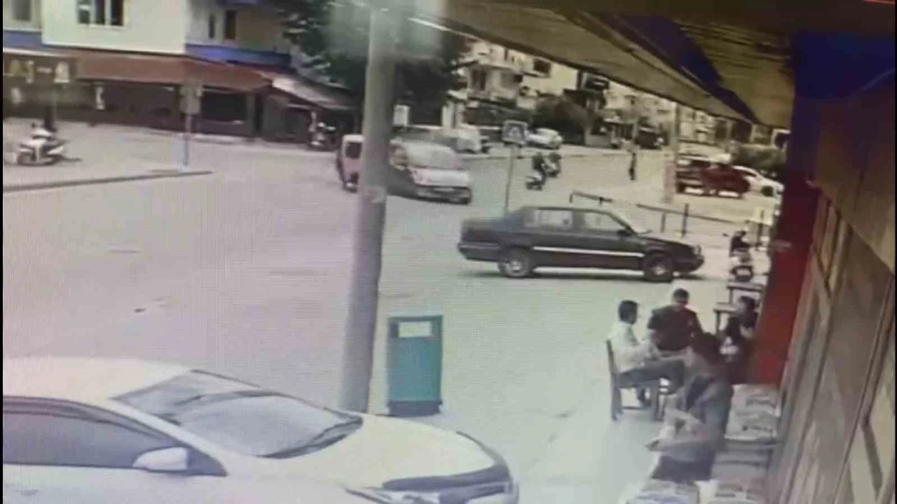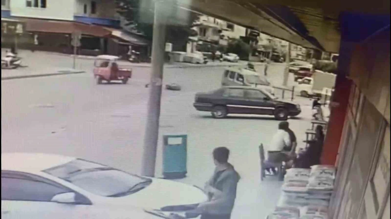 Antalya’nın Gazipaşa ilçesinde hafif ticari araç ile 3 tekerlekli elektrikli motosikletin çarpıştığı kaza, bir iş yerinin güvenlik kamerasına yansıdı. Kazanın ardından her iki aracın sürücüsü de olay yerinden ayrıldı.