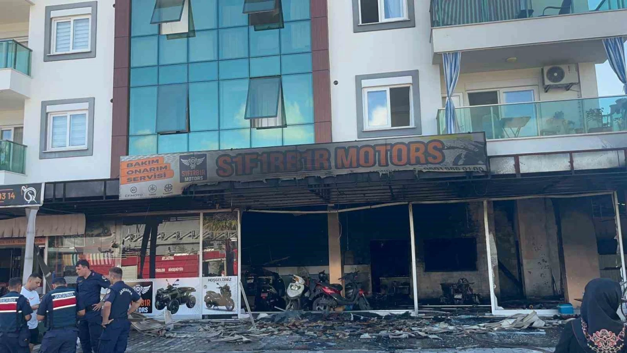Antalya’nın Alanya ilçesinde motosiklet servisinde çıkan yangında 10’dan fazla motosiklet küle döndü.