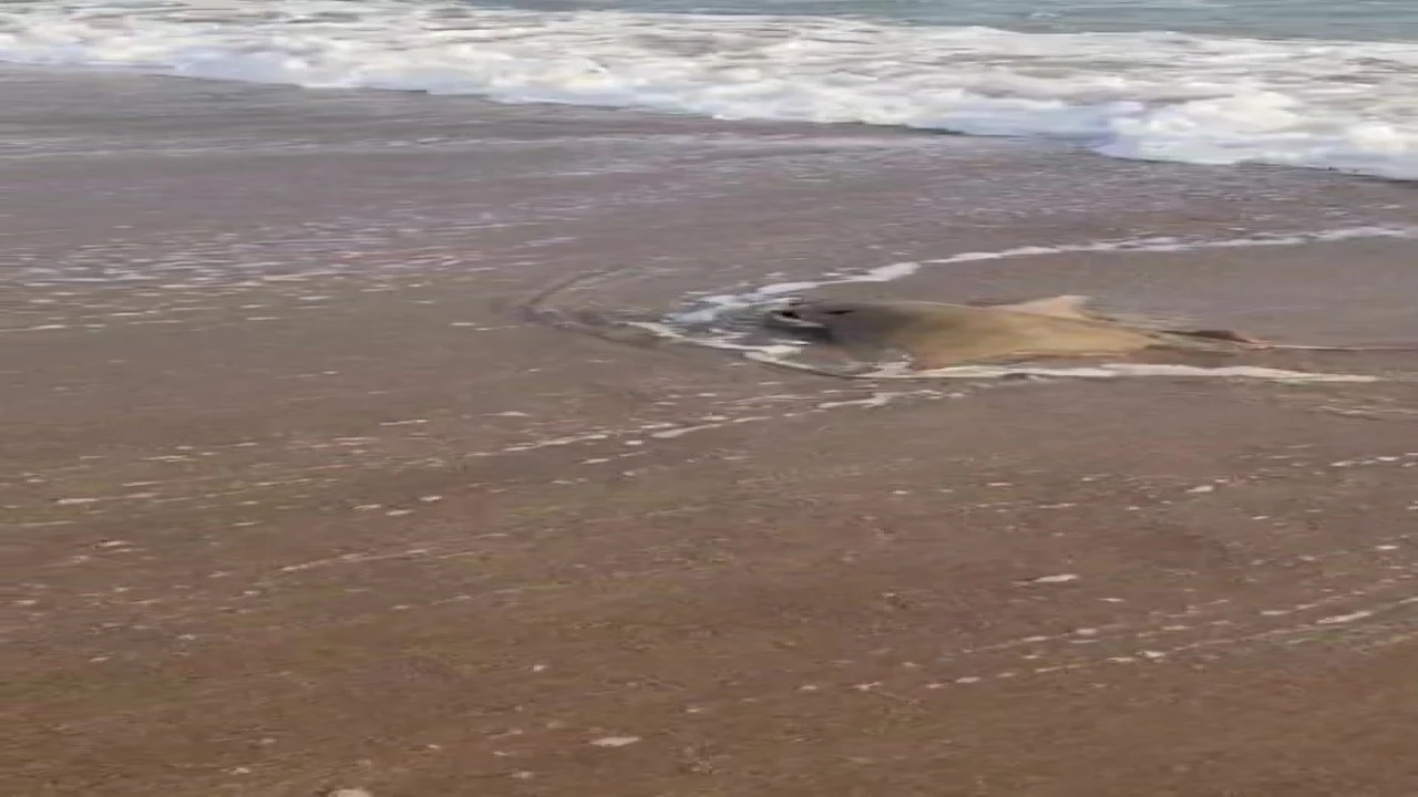 ANTALYA’NIN LARA SAHİLİ’NDE OLTA İLE BALIK TUTAN AMATÖR BALIKÇILARIN OLTASINA VATOZ BALIĞI TAKILDI.
