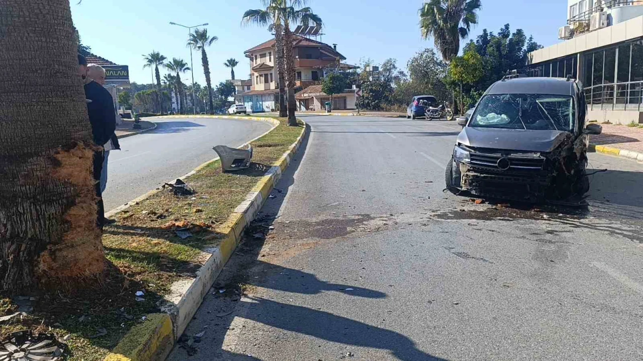 Antalya’nın Manavgat ilçesinde hafif ticari araç palmiye ağacına çarpması sonucu sürücü yaralandı. Kaza anı güvenlik kamerasına yansıdı.