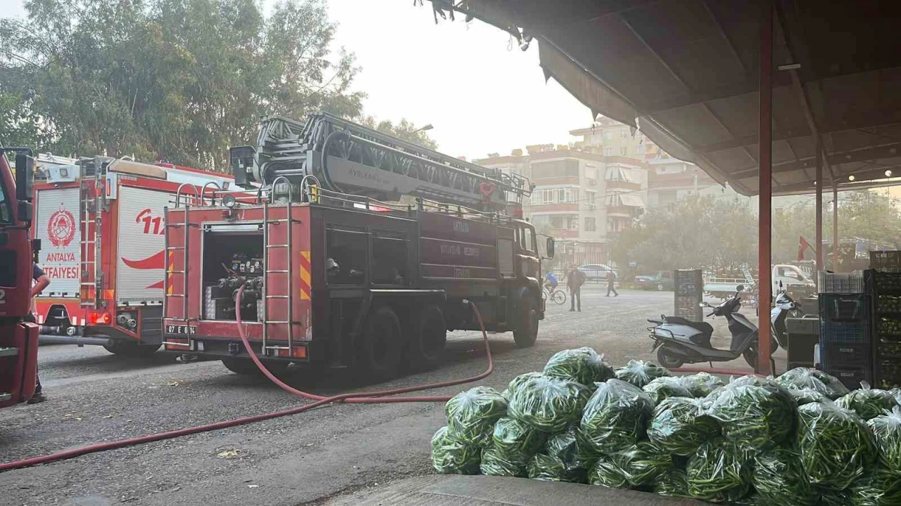 Yangın, saat 17.00 sıralarında Alanya’nın Saray Mahallesi Hacıkadırcıoğlu Caddesi üzerinde bulunan sebze ve meyve halinde meydana geldi. Edinilen bilgilere göre, haldeki bir sebze ve meyve deposunda henüz belirlenemeyen bir nedenle yangın çıktı. Dumanları fark eden çalışanlar, durumu 112 Acil Çağrı Merkezi’ne bildirdi. İhbar üzerine olay yerine Antalya Büyükşehir Belediyesine bağlı Alanya İtfaiye Birimi ekipleri sevk edildi. Yangın kısa sürede kontrol altına alınarak söndürüldü.