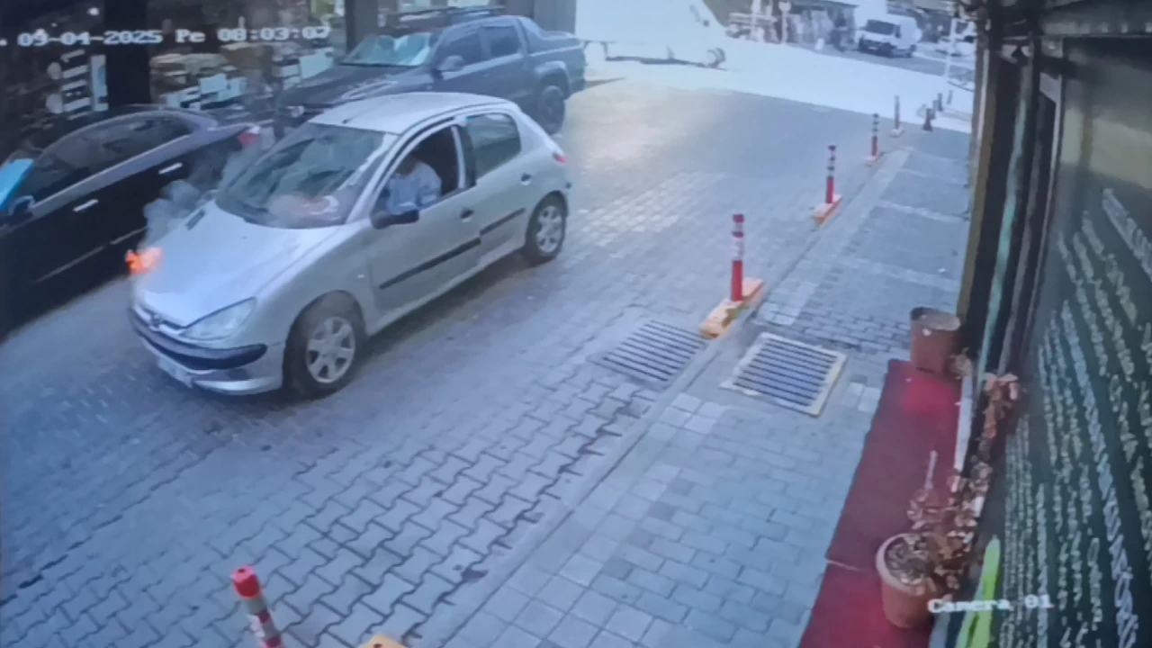 Güvenlik kamerasına saniye saniyesine yansıyan görüntülerde Yukarı Hisar Mahallesi Tugayoğlu Caddesinde seyir halindeyken 7001 sokağa dönen Veli İspirlioğlu’nun kullandığı 07 LHV 26 plakalı Peugeot marka otomobilin alt kısmından alevler çıkmaya başladı. Kısa sürede alevler motor bölümüne ulaşırken araçtan inen sürücü, motor kaputunu açmak istese de sıcak olmasından dolayı açamadı.